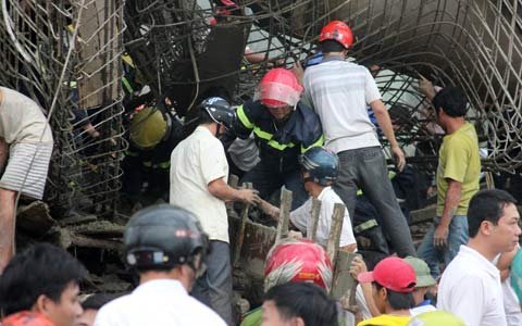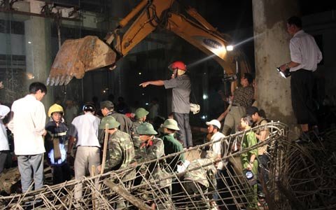Bới bê tông tìm nạn nhân vụ sập giàn giáo