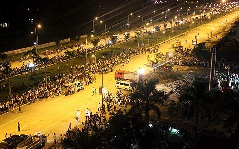 Công việc cứu hộ lúc này gặp muôn vàn khó khăn nguy hiểm. Lượng bê tông tươi đã dần đông cứng, và những cột trụ còn lại thì có thể đổ sập bất cứ lúc nào, đe doạ tính mạng nhiều người. Ảnh: Duy Tuấn