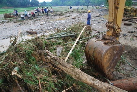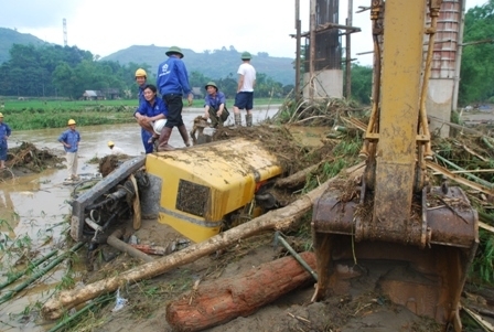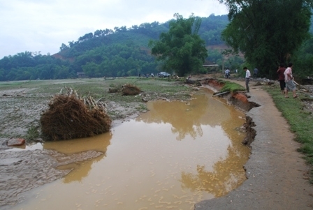trên suối Ngòi Đường dâng cao, gây nên lũ quét tàn phá các xã Tả Phời, Hợp