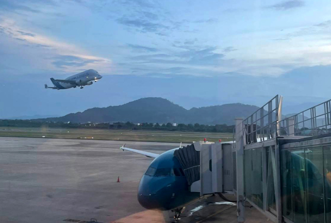 Đại diện sân bay quốc tế Đà Nẵng cho biết đây là lần đầu tiên dòng máy bay siêu trọng Airbus A300-600ST đến sân bay.
