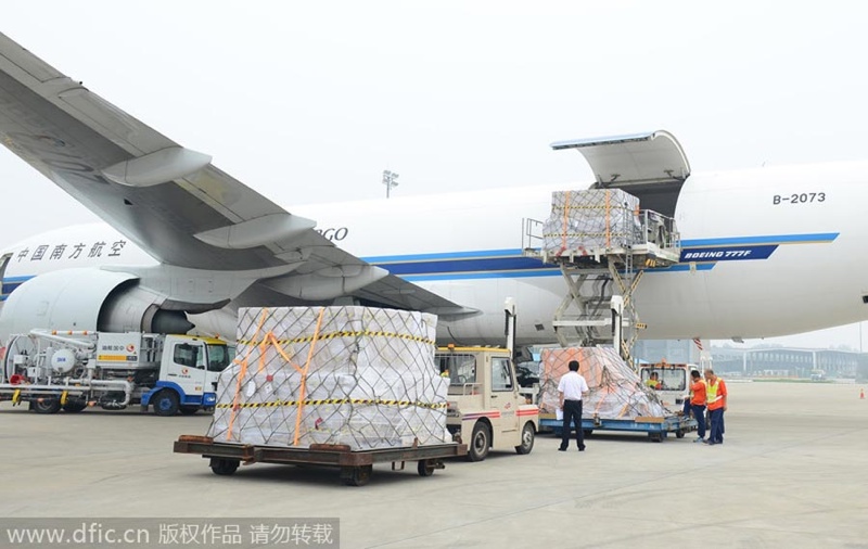 Theo người này, số iPhone 6 khổng lồ có trọng lượng xấp xỉ 128 tấn. Dù hình ảnh chỉ có thùng hàng được bọc kín, tấm ảnh thứ hai từ China Daily cho thấy một máy bay tương tự chứa đầy iPhone từ tỉnh Hồ Nam đến Chicago tuần trước.