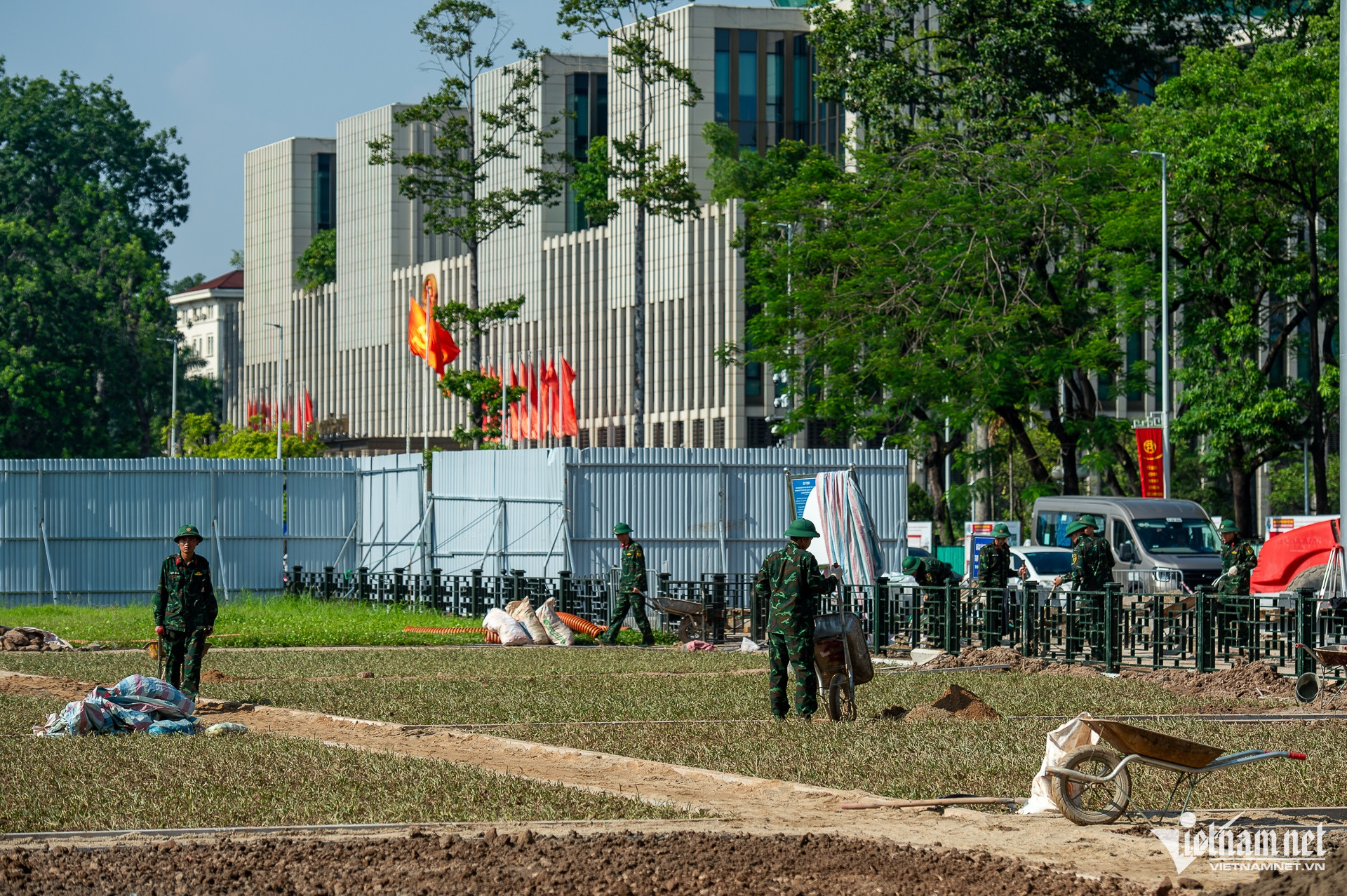 Thực hiện chỉ đạo của UBND TP Hà Nội, Ban Duy tu các công trình hạ tầng giao thông (Sở Xây dựng) đang đẩy nhanh tiến độ thi công dự án mở rộng đường Hùng Vương, đoạn từ phố Trần Phú đến Nguyễn Thái Học để thực hiện các nhiệm vụ trọng tâm của Trung ương, trong đó có Lễ diễu binh, diễu hành kỷ niệm 80 năm Cách mạng tháng Tám thành công và Quốc khánh 2/9.
