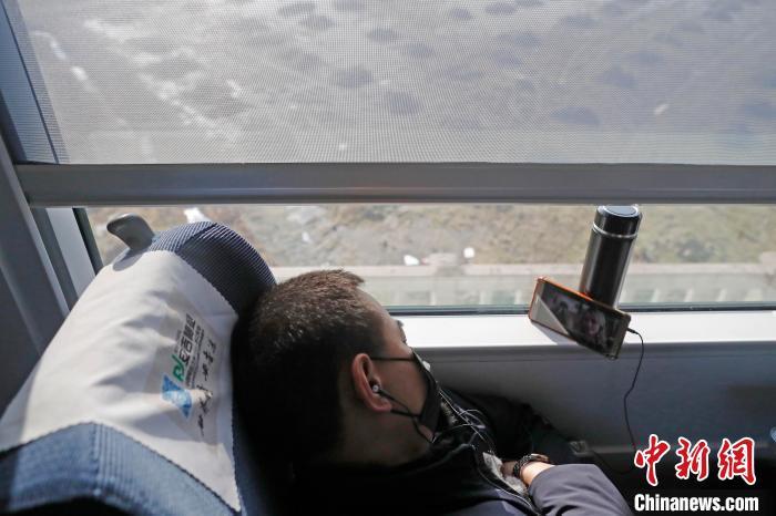 Một hành khách khác đeo khẩu trang, ngồi xem phim một mình trên tàu |