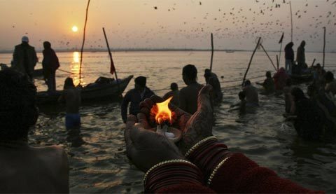 Người Hindu tại Allahabad, Ấn Độ, cầu nguyện trong lễ hội Magh Mela