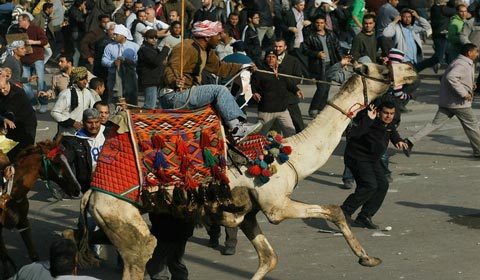 Nhiều tiếng súng nổ khi đoàn biểu tình đụng độ nhau tại Quảng trường Tahrir, Cairo, Ai Cập.