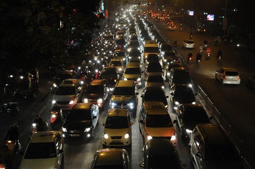 | Tắc đường không kể thời gian - Ảnh Long Anh |