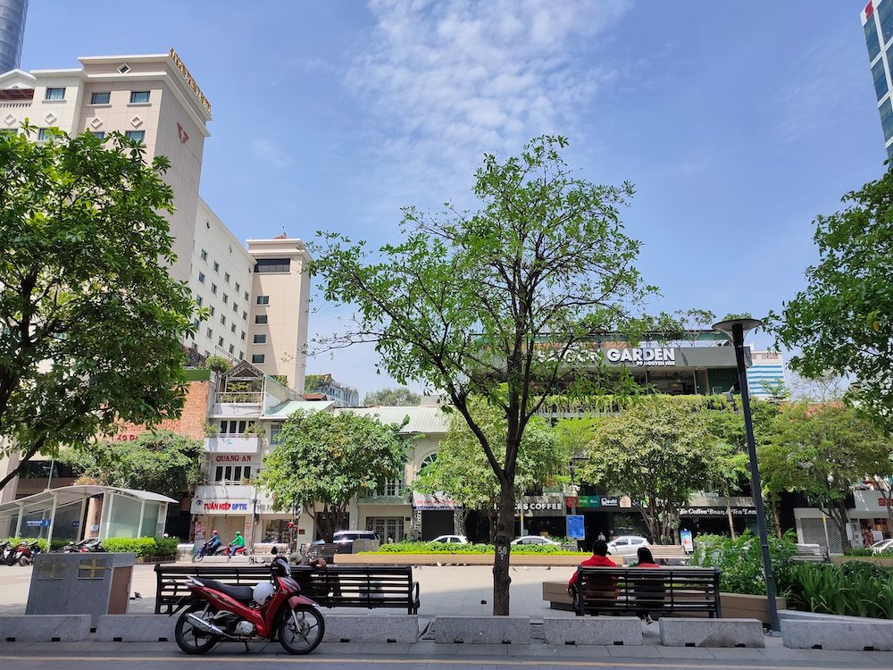 Tầm 10 giờ sáng, trời nắng đẹp, tạo điều kiện lý tưởng để xách một chiếc smartphone ra đường ghi lại một số hình ảnh ở trung tâm Sài Gòn. Chiếc smartphone ở phân khúc tầm trung, không thật xuất sắc nhưng vừa đủ để cho ảnh tốt trong điều kiện ánh nắng đẹp.