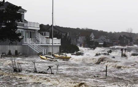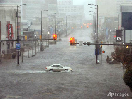 Sandy, một trong những cơn bão lớn nhất từng tấn công vào nước Mỹ, đã đổ bộ vào gần khu nghỉ dưỡng của thành phố Atlantic, New Jersey với những cơn gió dữ dội và mưa nặng hạt vào hôm thứ Hai, sau khi buộc người dân phải sơ tán, các phương tiện giao thông ngừng hoạt động và gián đoạn chiến dịch tranh cử tổng thống.