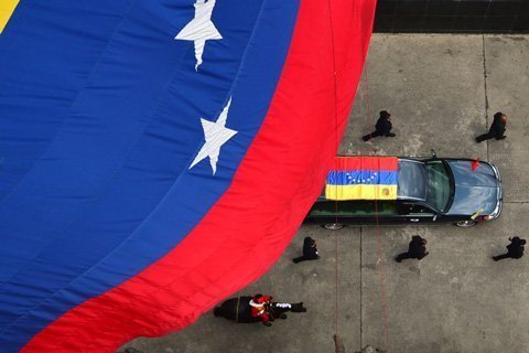 Quan tài của cố Tổng thống Venezuela Hugo Chavez được đưa từ Học viện quân sự tới 4 de Febrero ở Caracas. Ảnh Getty