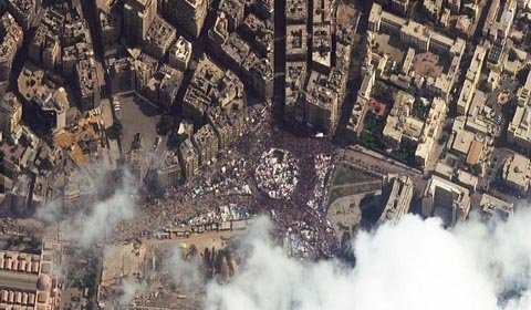 Người biểu tình kéo tới chật kín Quảng trường Tahrir, Cairo (Ai Cập) trong ngày lật đổ Tổng thống Hosni Mubarak-người lãnh đạo Ai Cập trong suốt 30 năm.