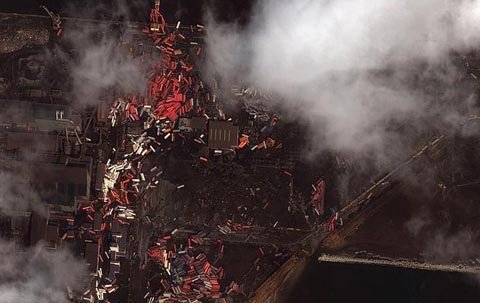 Nhà máy điện hạt nhân Fukushima Daiichi tại Nhật ba phút sau khi lò phản ứng số 3 bị nổ.