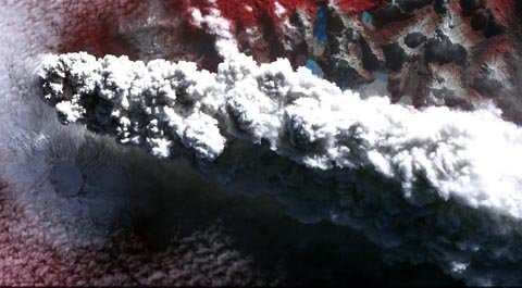Những cột khói bốc lên núi lửa Puyehue-Cordon Caulle ở Chile do vệ tinh Terra của Nasa chụp vào ngày 11 tháng 6.