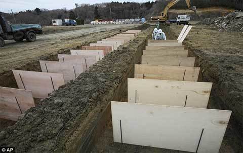 Không có thời gian cho những giọt nước mắt, Nhật bắt đầu nhiệm vụ đau buồn: mai táng hàng trăm thi thể của các nạn nhân động đất trong những ngôi mộ tập thể.