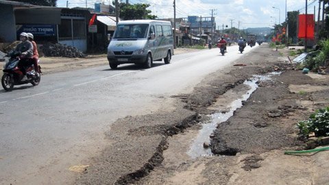 dày đặc, mặt đường trồi nhựa, 2 bên sạt lở…