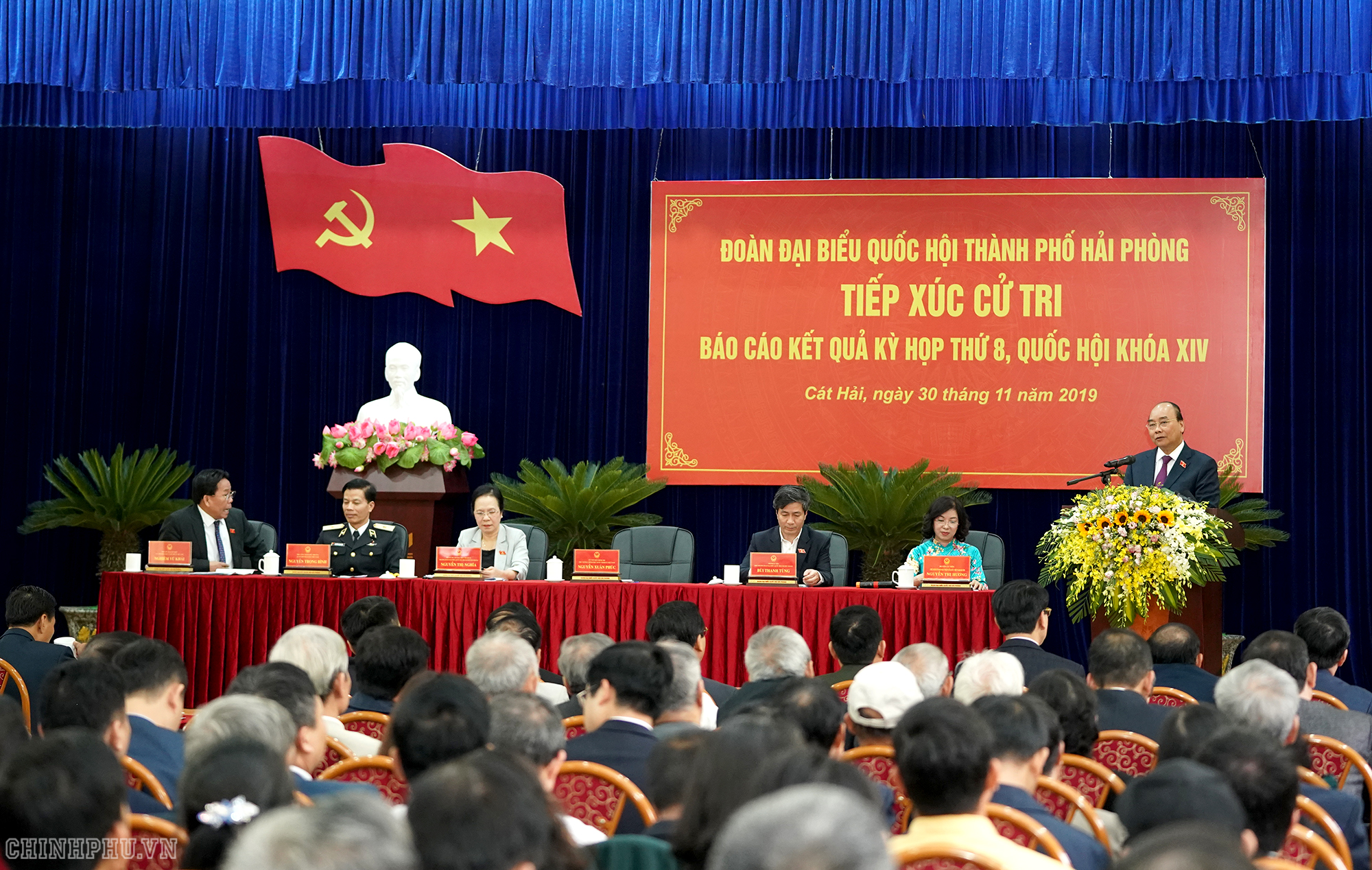 Thủ tướng tiếp xúc cử tri huyện Cát Hải, Hải Phòng. Ảnh VGP/Quang Hiếu |