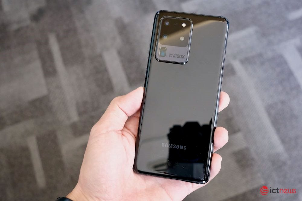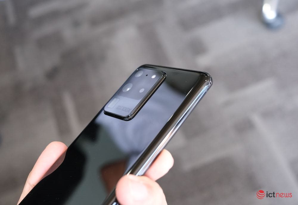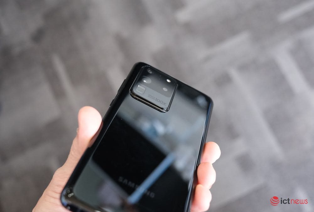 Galaxy S20 Ultra cao cấp nhất, có màn hình kích thước 6,9 inch. Cụm camera của máy có camera chính độ phân giải lên đến 108MP, cho chất lượng ảnh rất chi tiết khi ICTnews chụp thử, bạn có thể xem video đính kèm. Camera thứ hai của S20 Ultra độ phân giải 48MP, có khả năng zoom quang 10x, kết hợp với kỹ thuật số có thể zoom 30x, 50x, 100x. Chất lượng ảnh khi chụp ở 100x sẽ phục vụ được nhiều mục đích khác hơn là dùng làm ảnh nghệ thuật. Khi dùng camera 108MP thì không thể zoom 100x, vì hai camera khác nhau.