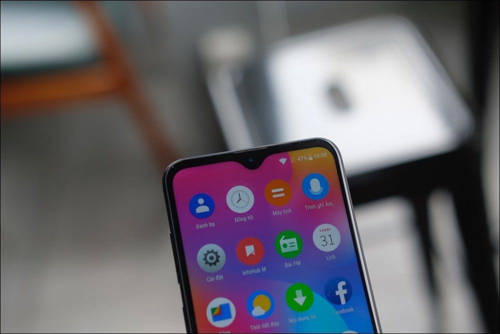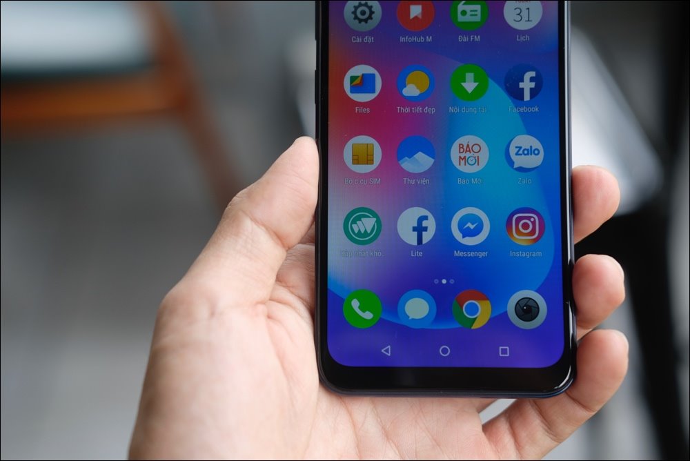 Màn hình Coolpad N5 6,2 inch dạng giọt nước, tức cụm camera trước nằm ở phía phần khuyết rất nhỏ phía trên màn hình. |
