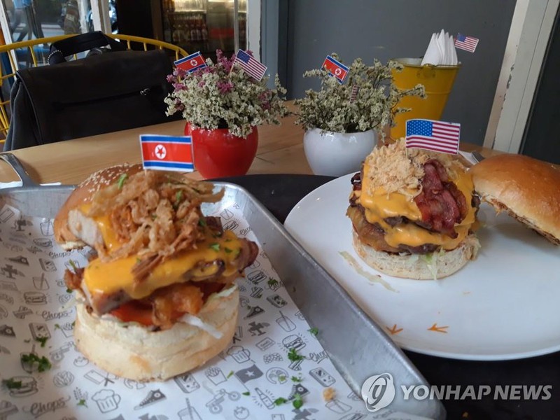 Độc đáo món bánh hamburger Mỹ - Triều Tiên tại một nhà hàng ở Hà Nội. Nguồn: Yonhap