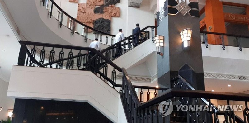 Mật vụ Triều Tiên kiểm tra bên trong khách sạn Melia trước thềm thượng đỉnh Mỹ - Triều lần 2. Nguồn: Yonhap