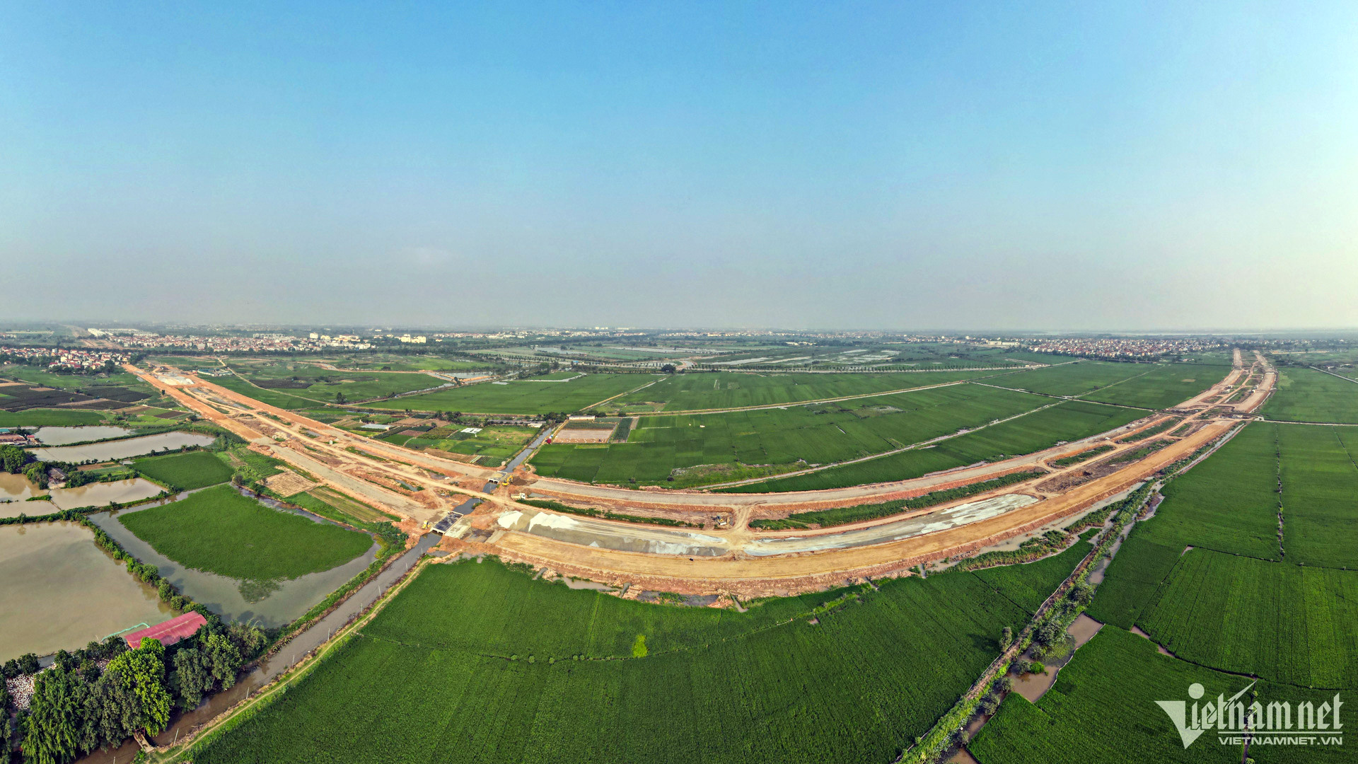 Đường Vành đai 4 dài 112km đi qua Hà Nội - Hưng Yên - Bắc Ninh đang được đẩy mạnh thi công. Phần lớn dự án chạy qua khu vực đất ruộng.