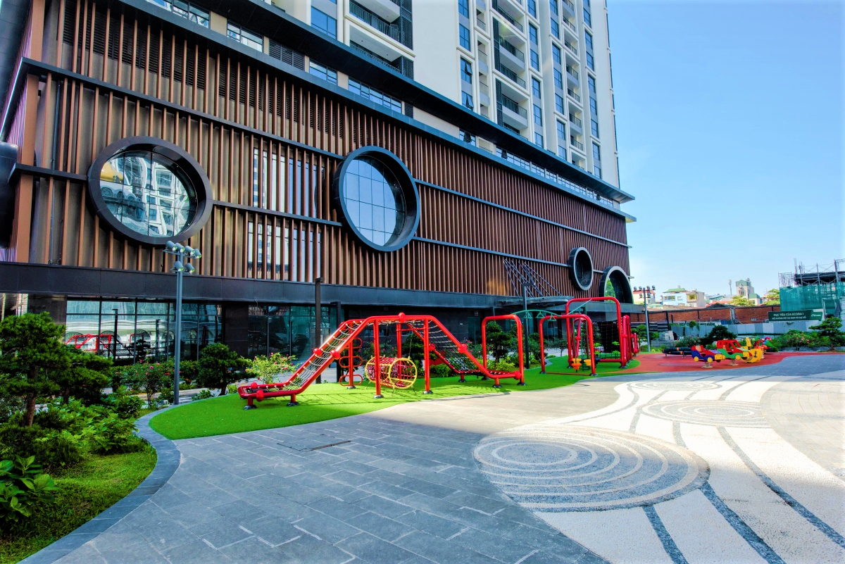 Nơi quảng trường nội khu với điểm nhấn kiến trúc là Lâu đài Thủy kính với những hoa văn được gợi cảm hứng từ hình ảnh mặt trời và hoa anh đào cách điệu, đã được chủ đầu tư bố trí các khoảng sân vườn để con trẻ có thể vui chơi hay cùng bố mẹ, ông bà dạo bộ mỗi ngày trong một không gian an toàn, thoáng đãng.