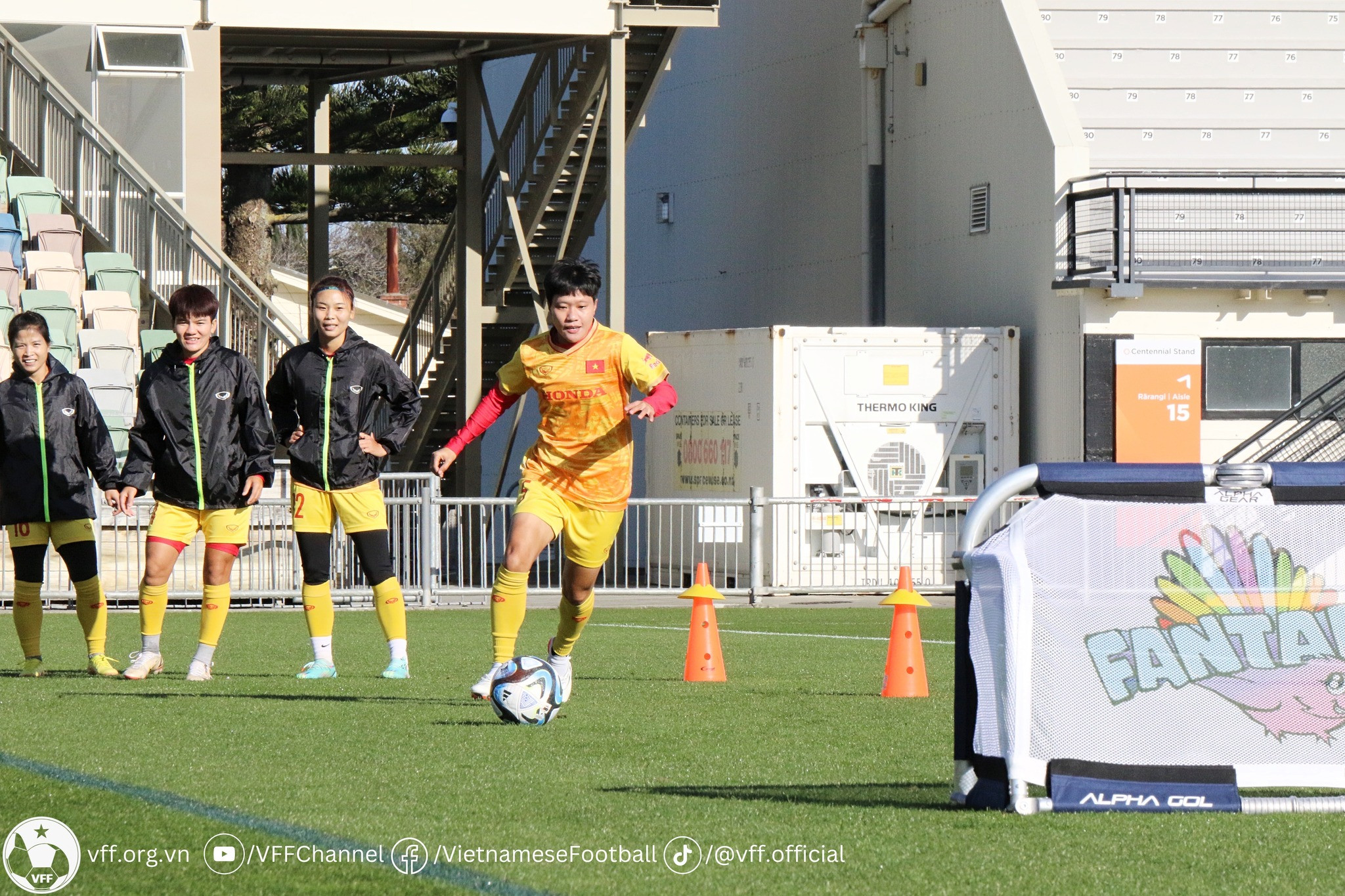 Sáng 7/7, tuyển nữ Việt Nam có buổi tập thứ 2 tại New Zealand chuẩn bị cho World Cup 2023. Huỳnh Như cùng các đồng đội nỗ lực thích nghi nhanh nhất với điều kiện thời tiết lạnh và chênh lệch múi giờ.