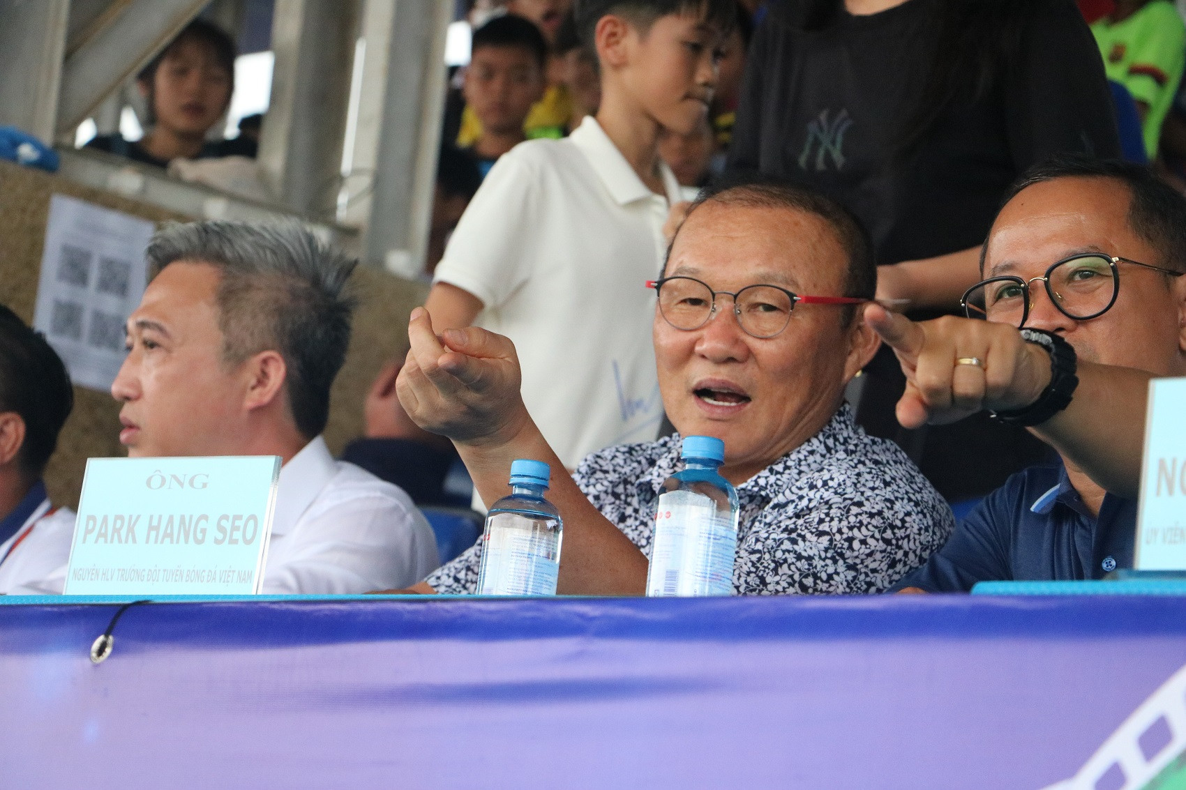 Hàng trăm người hâm mộ trên khán đài đã reo hò cuồng nhiệt khi ông Park xuất hiện, nhiều người tranh thủ xin chữ ký và chụp hình lưu niệm khi ông ngồi theo dõi trận đấu.
