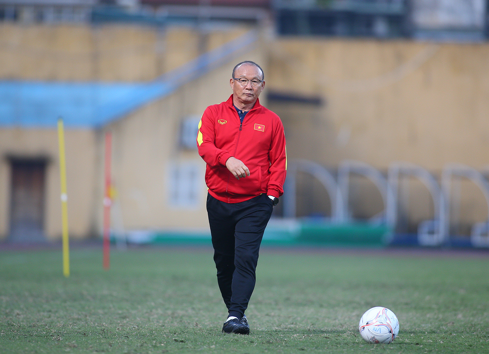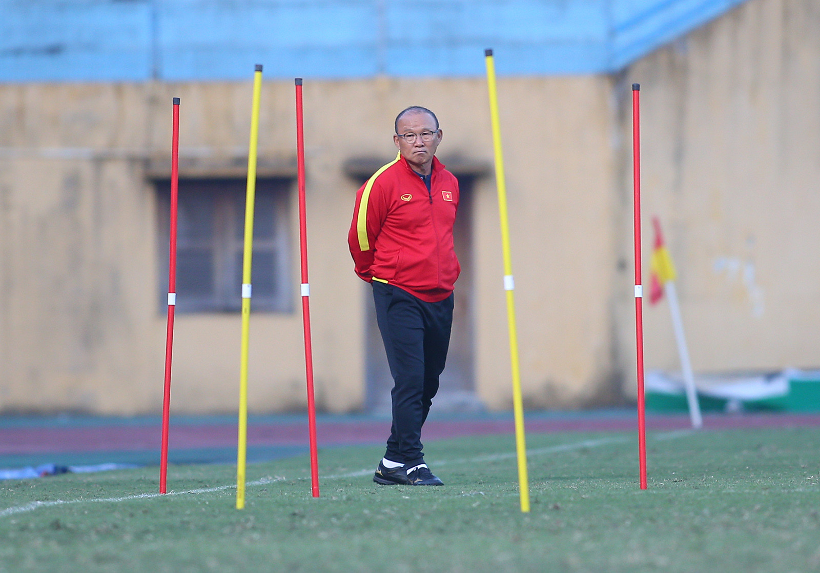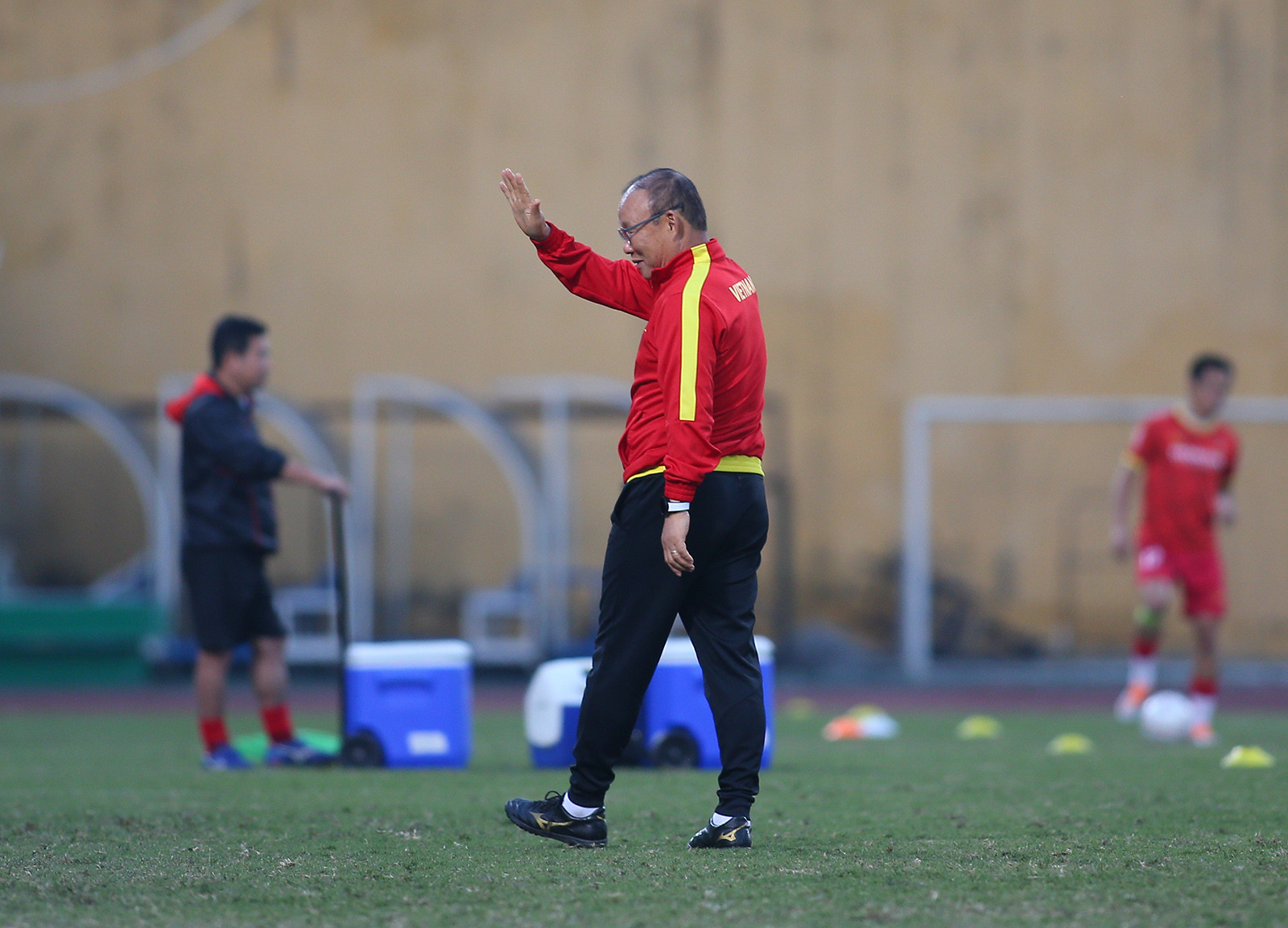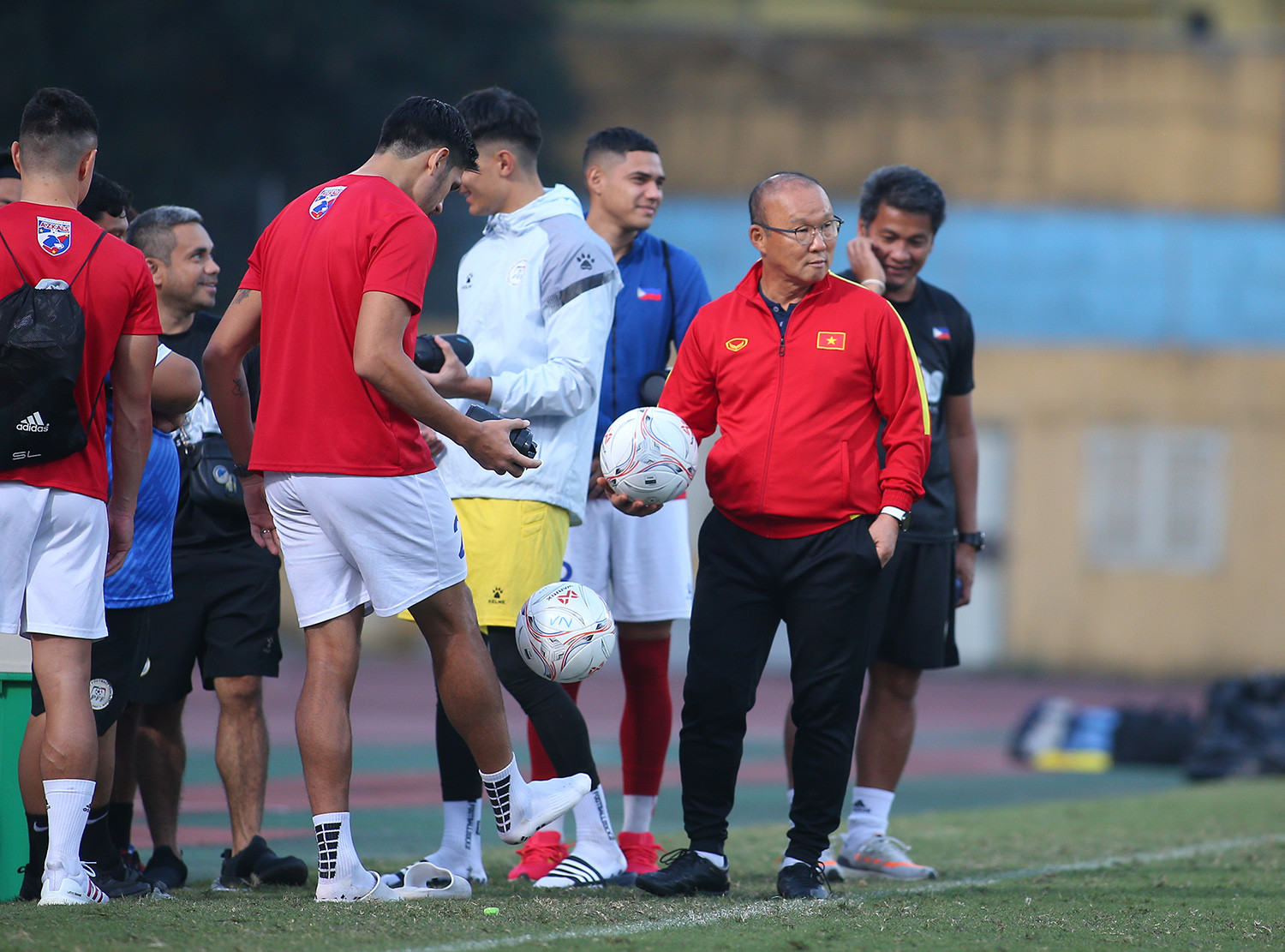 HLV Park Hang Seo có hành động rất đẹp với các cầu thủ Philippines trong buổi tập chiều 13/12 của tuyển Việt Nam trên sân Hàng Đẫy.