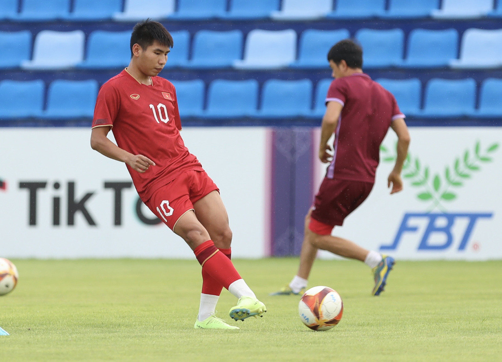 Chiều 10/5, U22 Việt Nam có buổi tập chuẩn bị cho trận gặp Thái Lan, lượt cuối vòng bảng (bảng B) SEA Games 32Ở buổi tập này, HLV Philippe Troussier quyết định thay đổ số áo của khoảng một nửa đội.Đây được xem là chiêu của HLV Philippe Troussier nhằm đánh lạc hướng đối thủ Thái Lan. Với cùng 9 điểm và chắc suất đi tiếp vào bán kết, U22 Việt Nam có tâm lý khá thoải mái trước trận cuối bảng với kình địch Thái Lan.Dù đã giành vé đi tiếp nhưng Văn Trường và các đồng đội rất quyết tâm Thái Lan.HLV Philippe Troussier nhiều khả năng có một vài điều chỉnh về nhân sự ở trận cuối vòng bảng.“Hiện tại, U22 Việt Nam có được sự chuẩn bị tốt nhất cho trận đấu với U22 Thái Lan. Chúng tôi cố gắng tiếp tục duy trì phong độ cao cho vòng bán kết. Thực sự, U22 Việt Nam chuẩn bị cho trận gặp U22 Thái Lan như chuẩn bị trước tất cả các trận đấu khác. Ai được vào sân cũng sẽ cố gắng thực hiện tốt nhất ý đồ của thầy”, tiền vệ Khuất Văn Khang cho biết.Trước trận gặp Thái Lan, HLV Philippe Troussier tổ chức cuộc họp chuyên môn với toàn đội để lên phương án cho trận quyết định ngôi đầu bảng B.HLV Philippe Troussier có nhiều toan toán trong trận gặp Thái Lan.