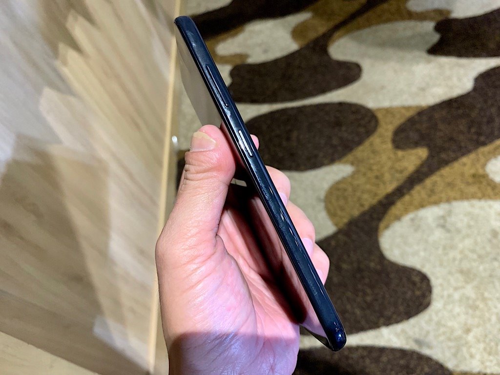 Cạnh trái máy gồm nút kích hoạt Google Assistant và khe cắm SIM |