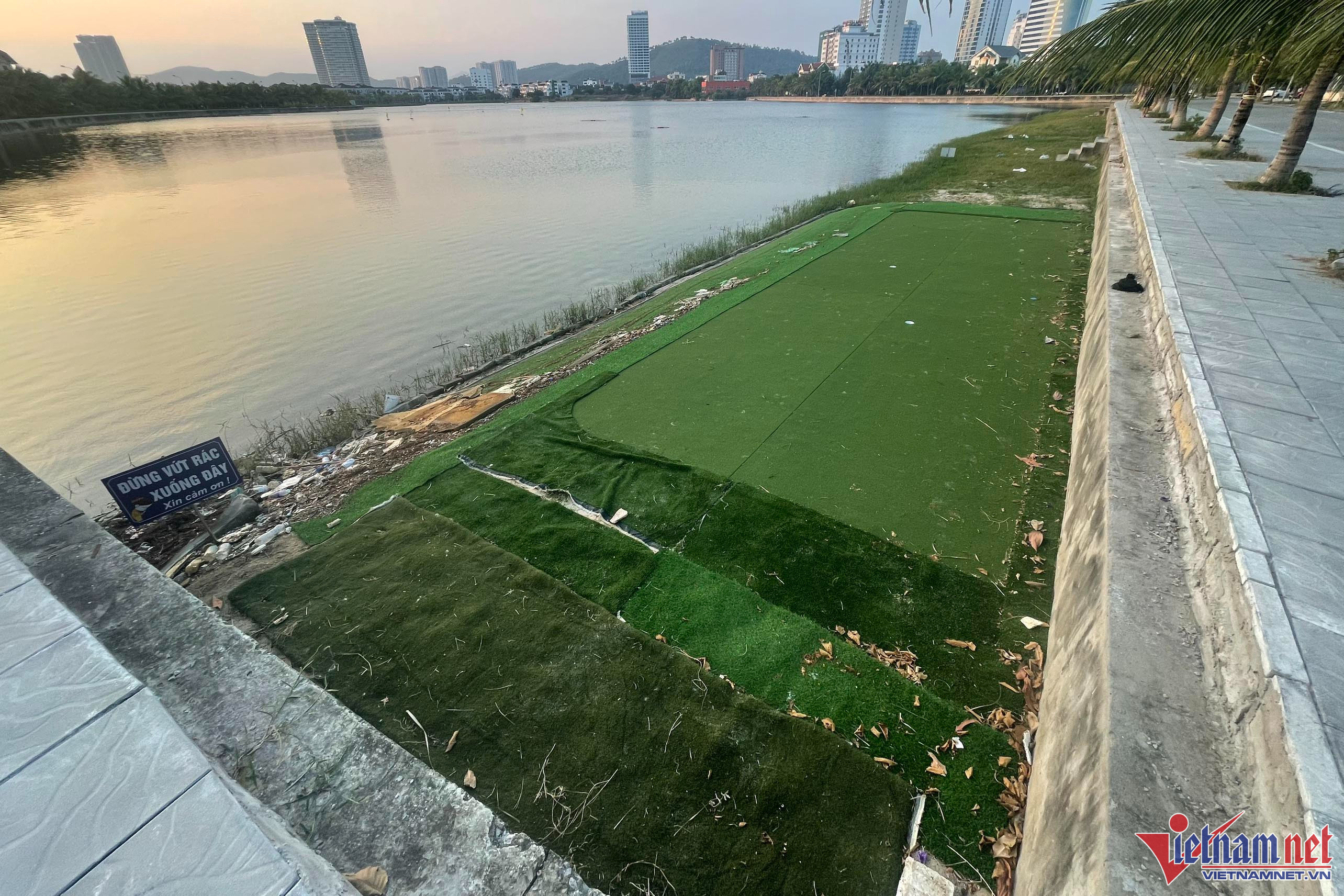 Ngoài ra, một khu vực lòng hồ điều hoà cũng bị chiếm dụng, trải thảm cỏ nhựa để làm sân tập.