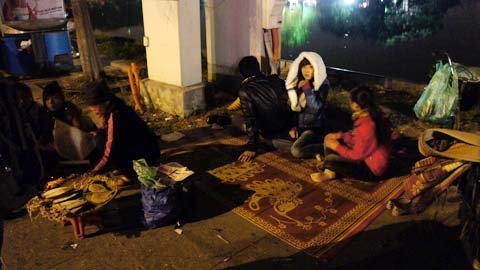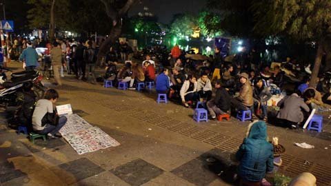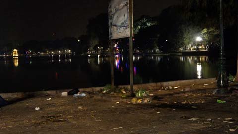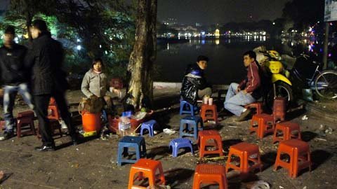 ngay từ chập choạng tối mỗi mét vuông quanh hồ đều được trải chiếu, xí phần.