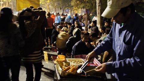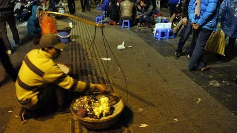 rong kéo về quanh Hồ Gươm từ 18h, thôi thì đủ cả, từ những món quà quê như ngô,