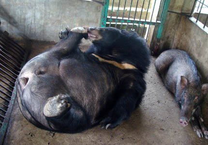 Chú gấu và chú lợn rừng nhốt chung ở giữa Vườn quốc gia U Minh Hạ