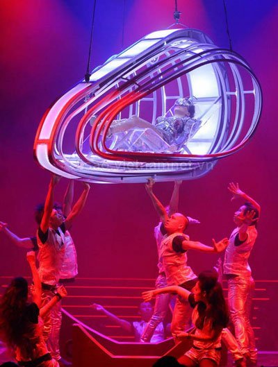 Hồ Ngọc Hà Live concert đã khiến khán giả thỏa mãn với sự đầu tư hoành tráng về âm thanh, ánh sáng, dàn dựng sân khấu… Hà Hồ cũng khiến nhiều người phải nể phục khi tung “độc chiêu” xuất hiện trong phi thuyền. Chân dài này đã ngồi trong một chiếc phi thuyền mô hình được thả từ trên cao xuống thông qua một chiếc cần cẩu lớn. Hồ Ngọc Hà bước ra trong bộ cánh mô phỏng người ngoài hành tinh với chất liệu đính kim loại, quần chẽn lưng cao đẹp rực rỡ.