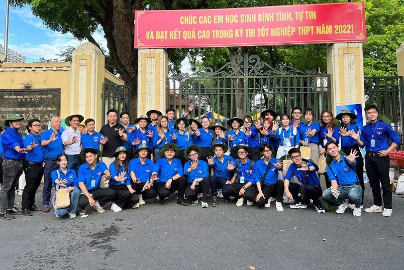 Góp phần cho thành công ấy không thể không kể đến sự hỗ trợ không ngừng từ các sinh viên tình nguyện với những chiếc áo xanh quen thuộc trải khắp các điểm thi.