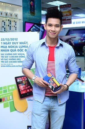 Hồ Vĩnh Khoa đã có mặt tại showroom Nokia sớm nhất để chờ đợi chiếc Lumia 820 đầu tiên xuất hiện tại TP.HCM. “Hot boy nổi loạn” cho biết mình hoàn toàn hài lòng với ngoại hình đầy cá tính của chiếc điện thoại cao cấp này.