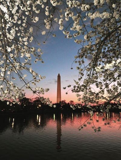 Những cánh hoa anh đào bên Washington Monument (Ảnh: EPA)