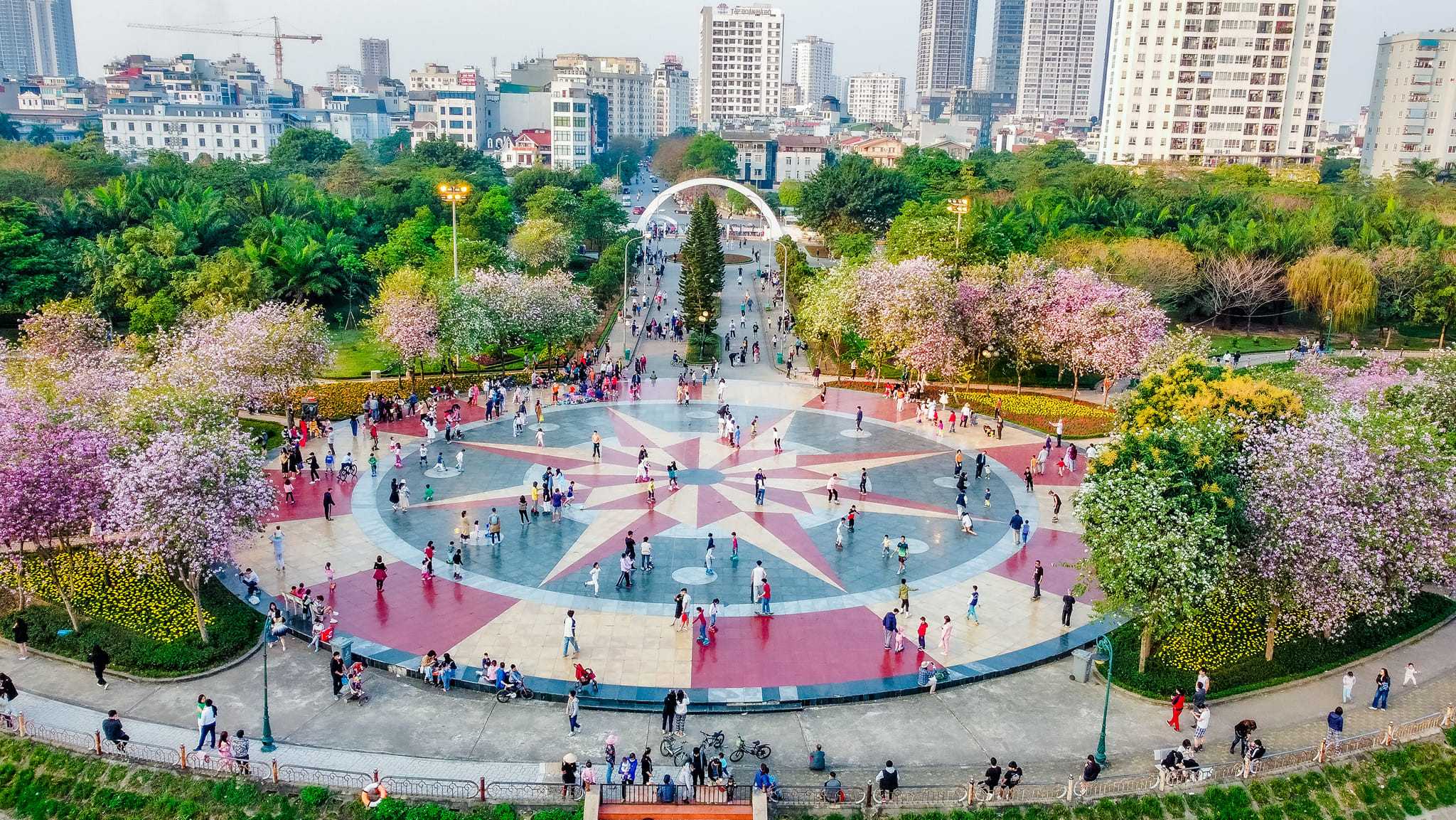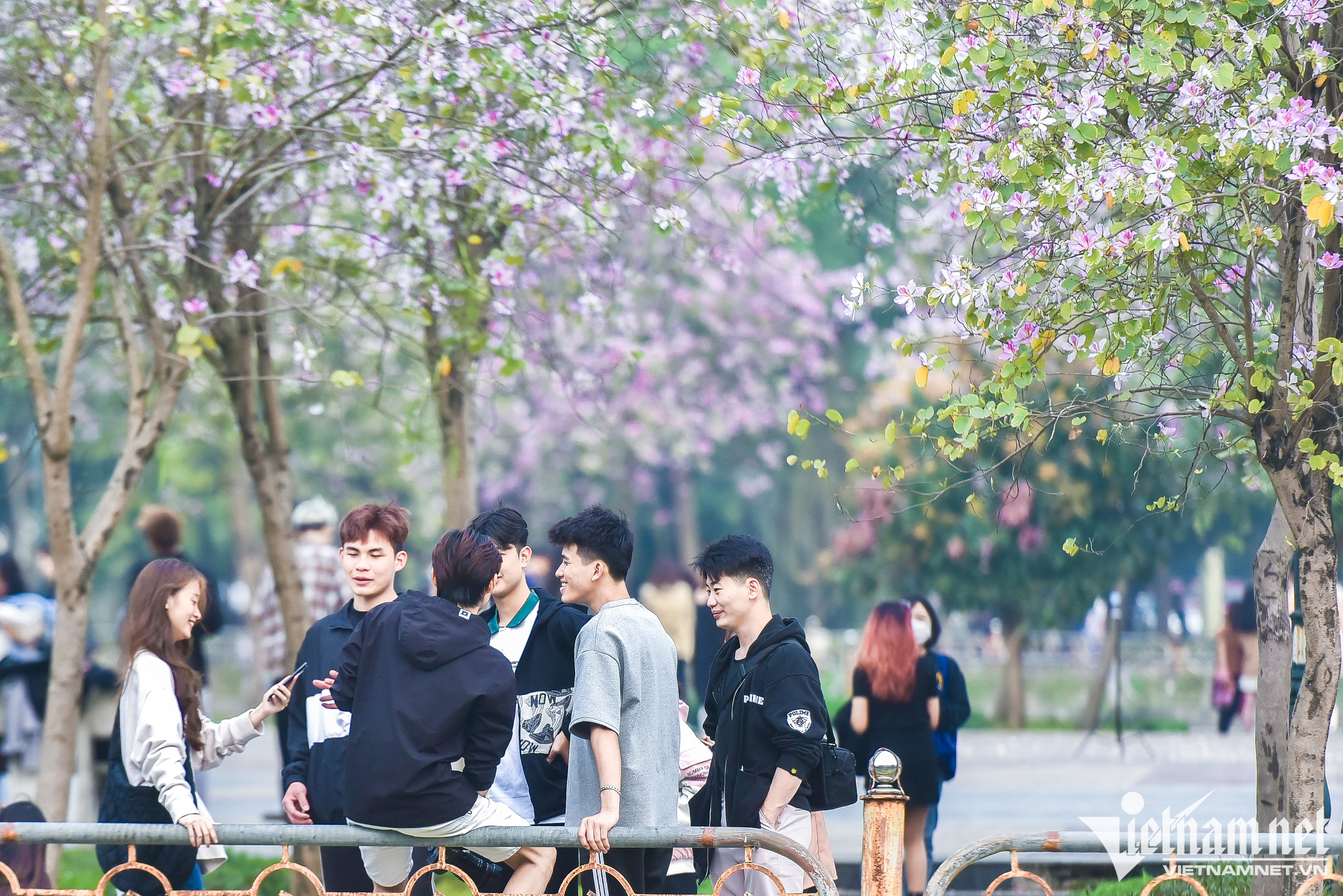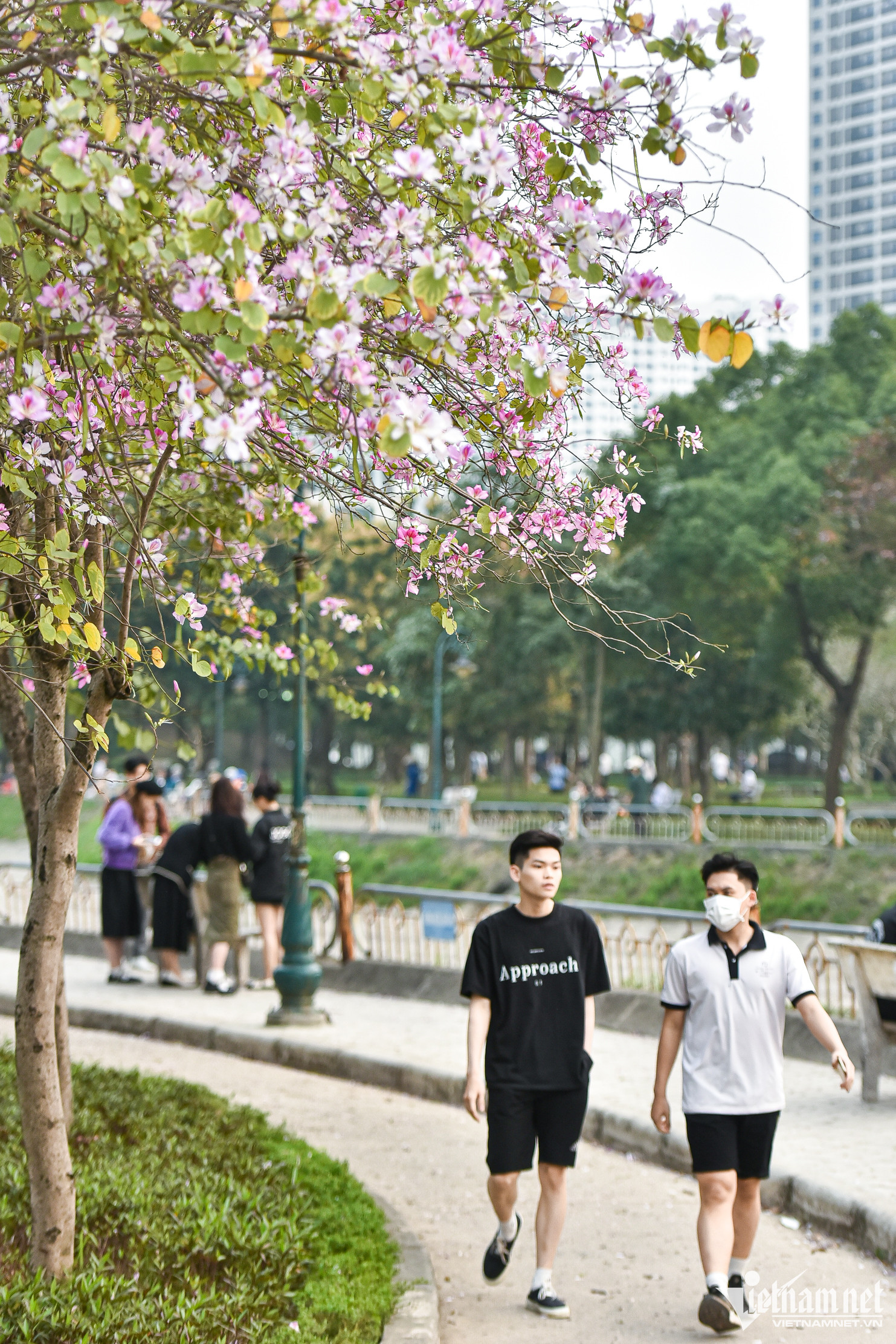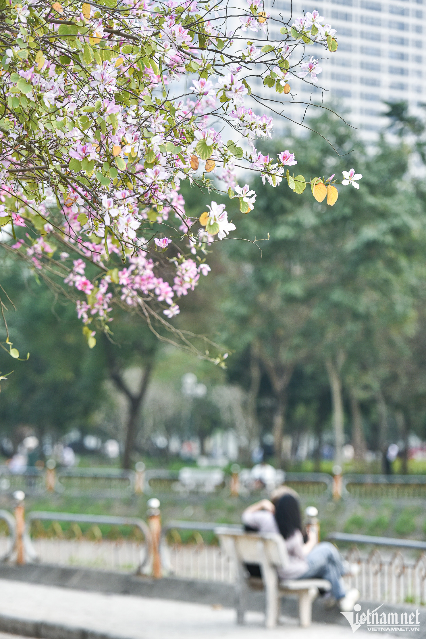 Những ngày đầu tháng ba, nhiều con đường, góc phố Hà Nội nhuộm trong màu tím phớt hồng của hoa ban - loài hoa đặc trưng ở vùng núi rừng Tây Bắc, được đem về Thủ Đô trồng từ những năm 1960 Hoa ban có 4 đến 5 cánh mềm mại, khi nở xòe thành hình quạt. Mùa hoa nở, sắc trắng điểm màu phớt hồng, hồng tím mộng mơ, lan tỏa mùi hương thoang thoảng, nhẹ nhàngTrước đây, tại Hà Nội, người dân và du khách yêu thích hoa ban thường tìm tới đường Nguyễn Du, Hoàng Diệu, Trần Phú, Thanh Niên, Bắc Sơn, khu đô thị Ciputra... Năm nay, địa điểm "gây sốt" trên mạng xã hội lại là hàng hoa ban ven hồ ở công viên Cầu GiấyKhác với những con đường hoa ban trong thành phố, hoa ban tại công viên Cầu Giấy được trồng bao quanh quảng trường, ven hồ nước. Nhìn từ trên cao, loài hoa của núi rừng Tây Bắc tạo nên màu sắc nên thơ, lãng mạn cho không gian (Ảnh: Vương Lộc)Anh Vương Lộc (Thanh Xuân - Hà Nội), một người mê nhiếp ảnh chia sẻ: "Tôi tình cờ đi ngang qua công viên Cầu Giấy. Khi thấy hoa ban nở rộ, tôi tới chụp hình, ghi lại khoảnh khắc. Loài hoa này mang vẻ đẹp bình dị, không quá sặc sỡ nhưng khi nở thì "máu lửa", hoa mọc dày đặc, dường như rất ít lá. Những cành cây nhỏ bé, khẳng khiu vẫn mọc dày hoa, tràn trề sức sống".Hàng cây hoa ban này nằm trong khuôn viên công viên thoáng đãng, không có xe cộ đi lại nên yên tĩnh, an toàn. Du khách mất từ 8.000 - 10.000 đồng gửi xe để có thể vào ngắm hoa, chụp ảnh
