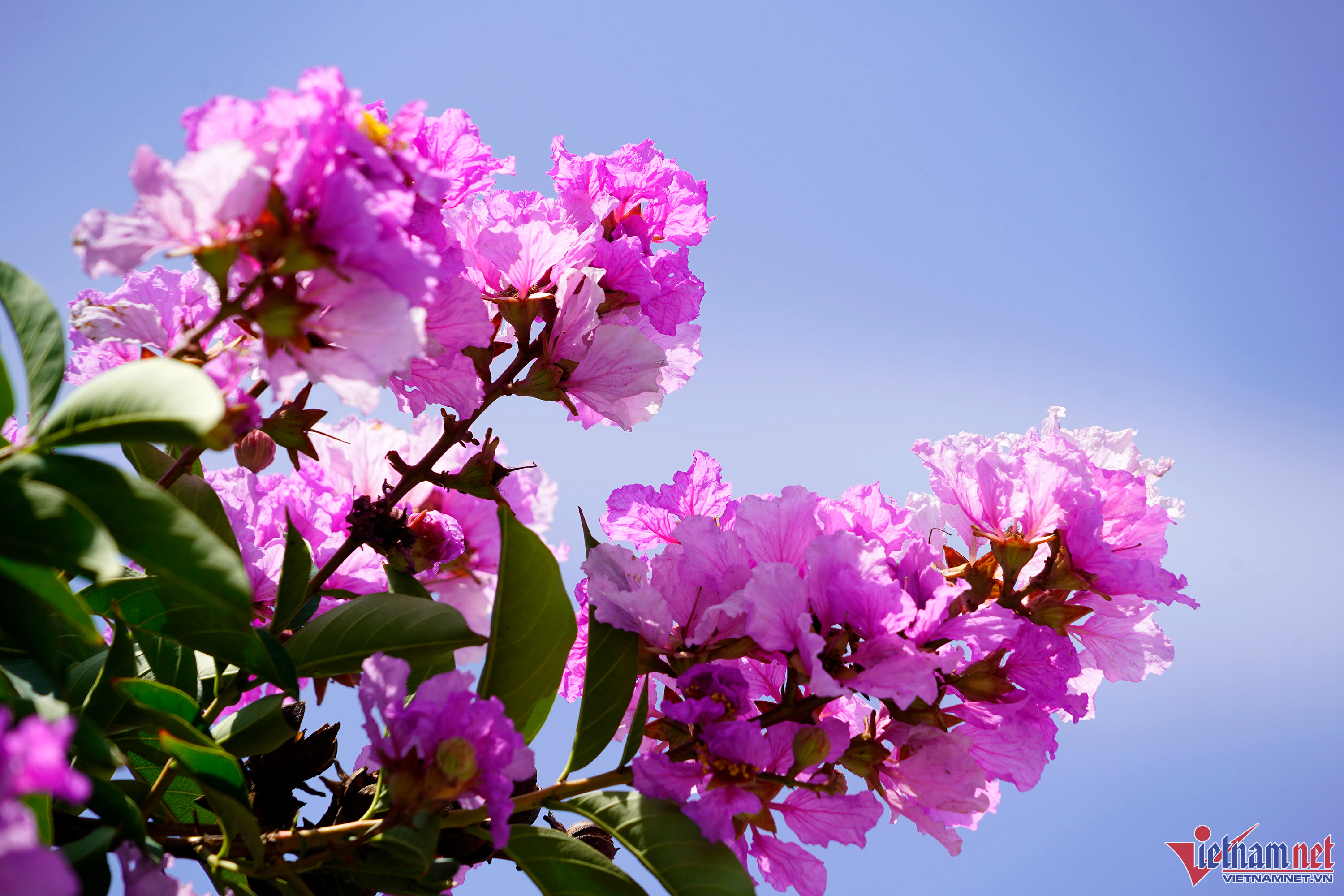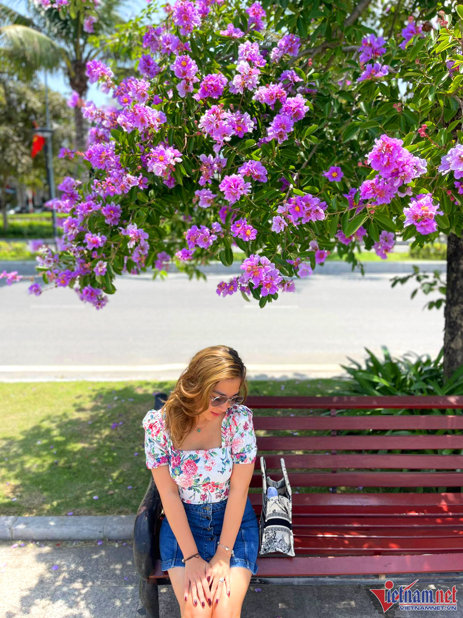 Người đi đường thích thú trước vẻ đẹp của hoa bằng lăng.Thời tiết thuận lợi giúp hoa bằng lăng bung cánh rực rỡ.Nhiều người tranh thủ tới những cây bằng lăng để "check-in".Hoa bằng lăng nở rộ tô điểm cho cung đường xinh đẹp.Tím rực một khoảng trờiCây bằng lăng còn cho bóng mát ở những nơi có ghế công cộng.