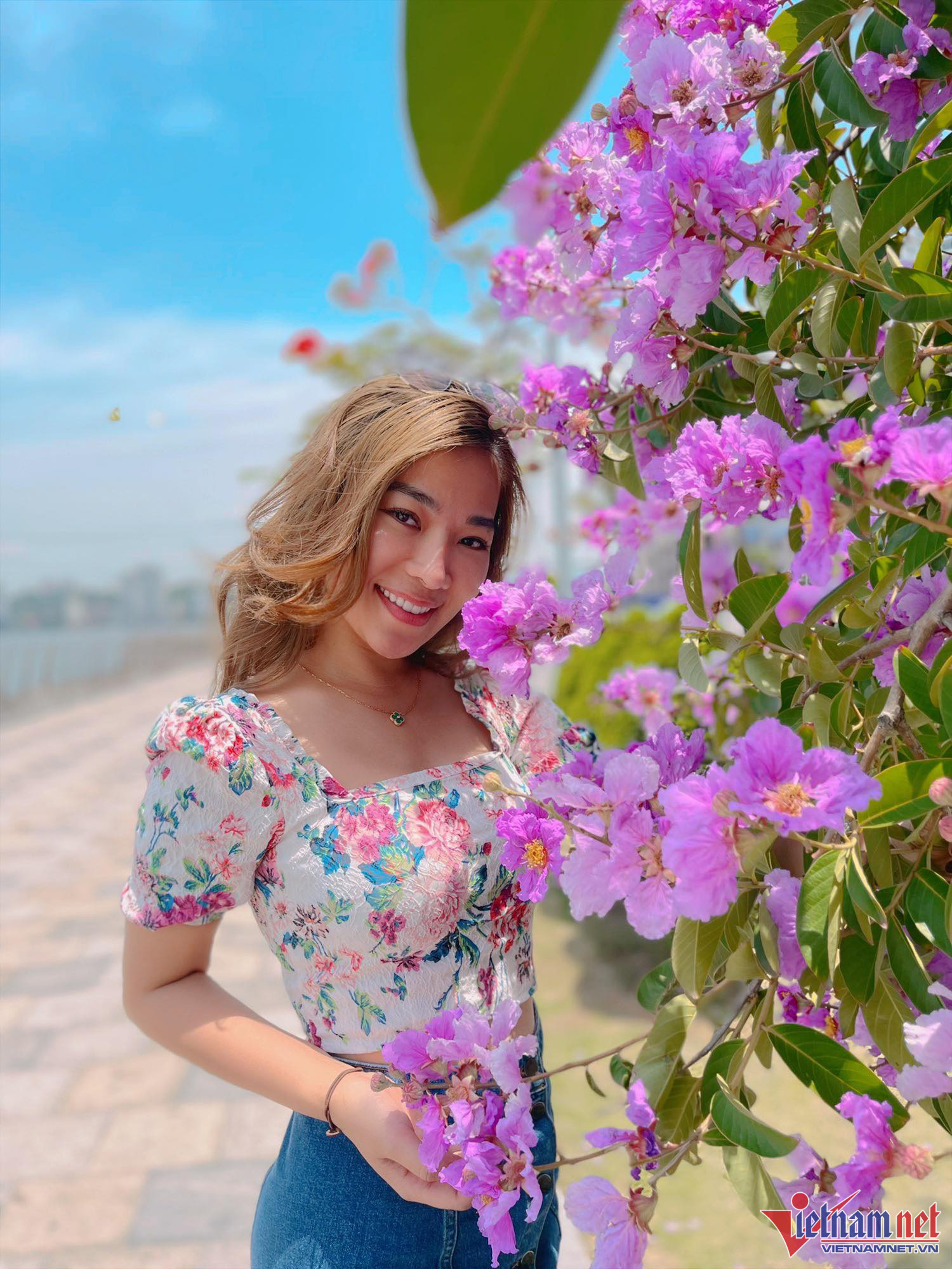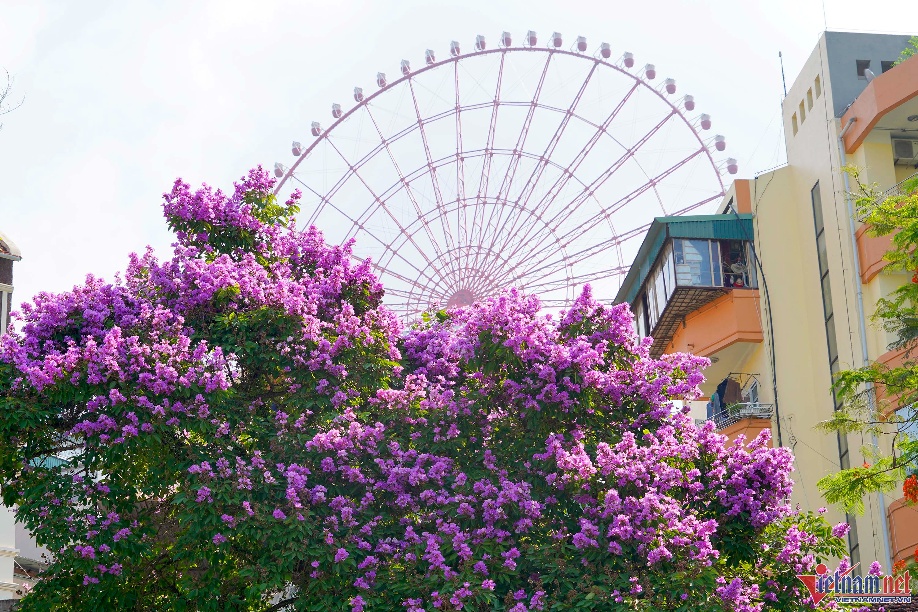 Người lớn tuổi cũng phải dừng lại để chụp ảnh hoa bằng lăng vì quá đẹp.Hoa bằng lăng nở rộ một khu phố.Hoa bằng lăng rực rỡ trong nắng.