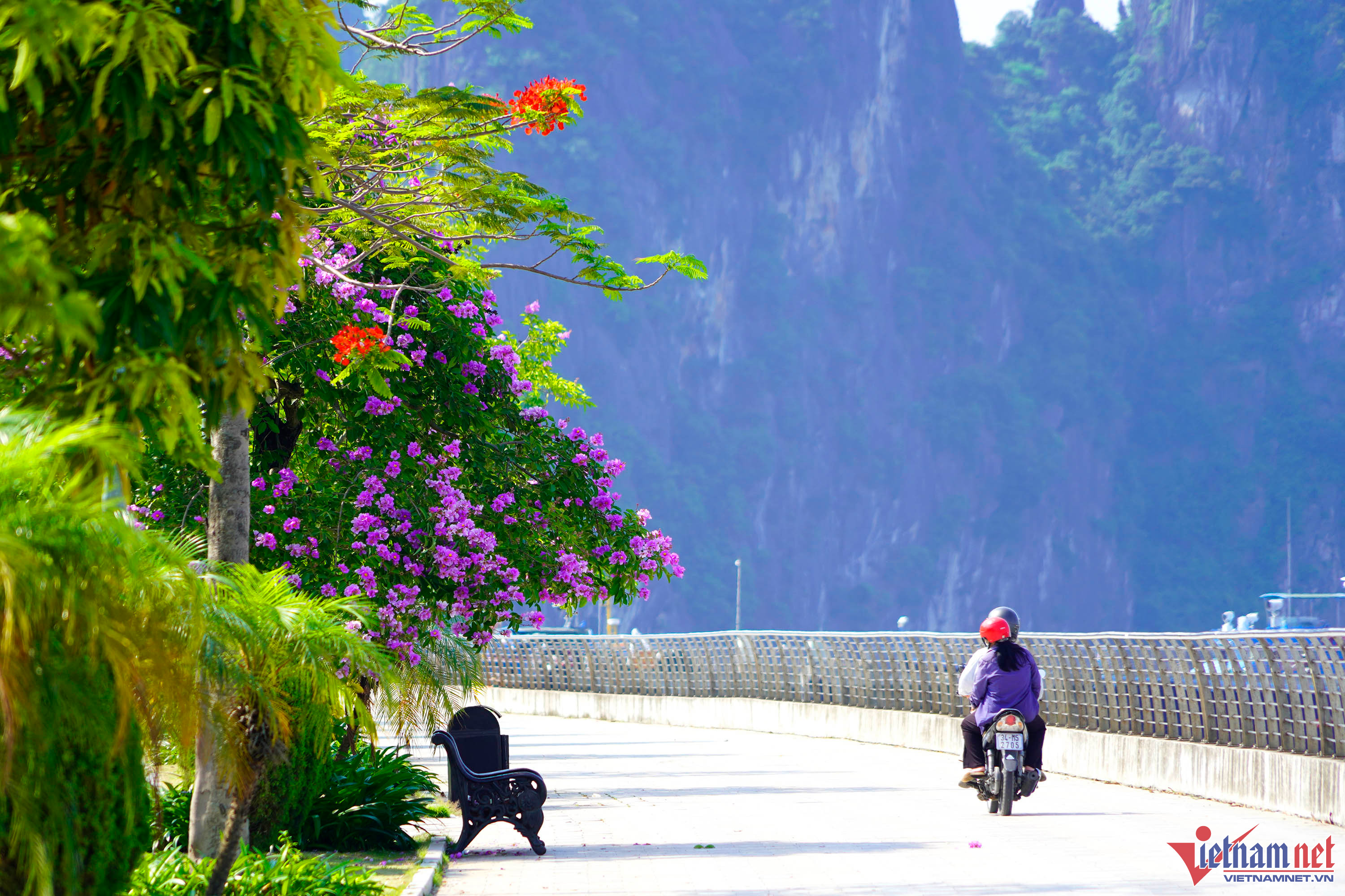 Nhiều tuyến đường ở TP Hạ Long, Quảng Ninh được tô điểm khi hoa bằng lăng nở rộ, từ người trẻ đến lớn tuổi đều say mê chụp ảnh loài hoa tím.