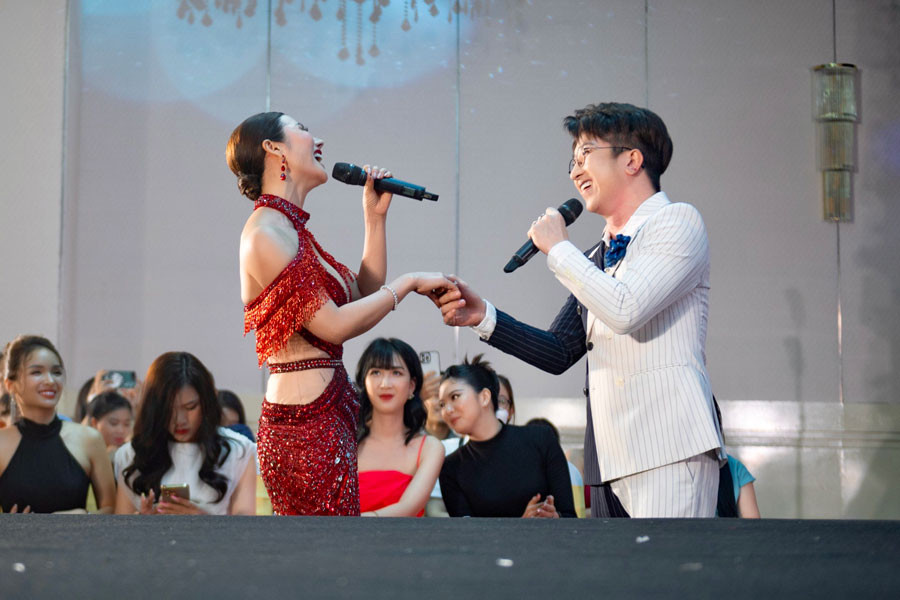 Diện bộ đầm hoa duyên dáng, nàng hậu góp giọng trong chương trình với ca khúc Giọt nắng bên thềm của nhạc sĩ Nguyễn Thanh Tùng. Ngay cả ca sĩ Vũ Phương – Quán quân của chương trình Hãy nghe tôi hát rất thích thú với màn trình diễn của nàng hoa hậu và đã mời mỹ nhân gốc Bạc Liêu cùng song ca trong phần trình diễn của anh.