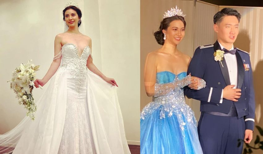 Lễ cưới diễn ra tại thành phố Tokyo, Nhật Bản trước sự chứng kiến của người thân, bạn bè và đồng nghiệp của 2 bên gia đình. Erina xuất hiện trong diện mạo rạng rỡ, xinh đẹp cùng hôn phu trên lễ đường. Người đẹp diện 4 bộ váy lộng lẫy trong ngày cưới.