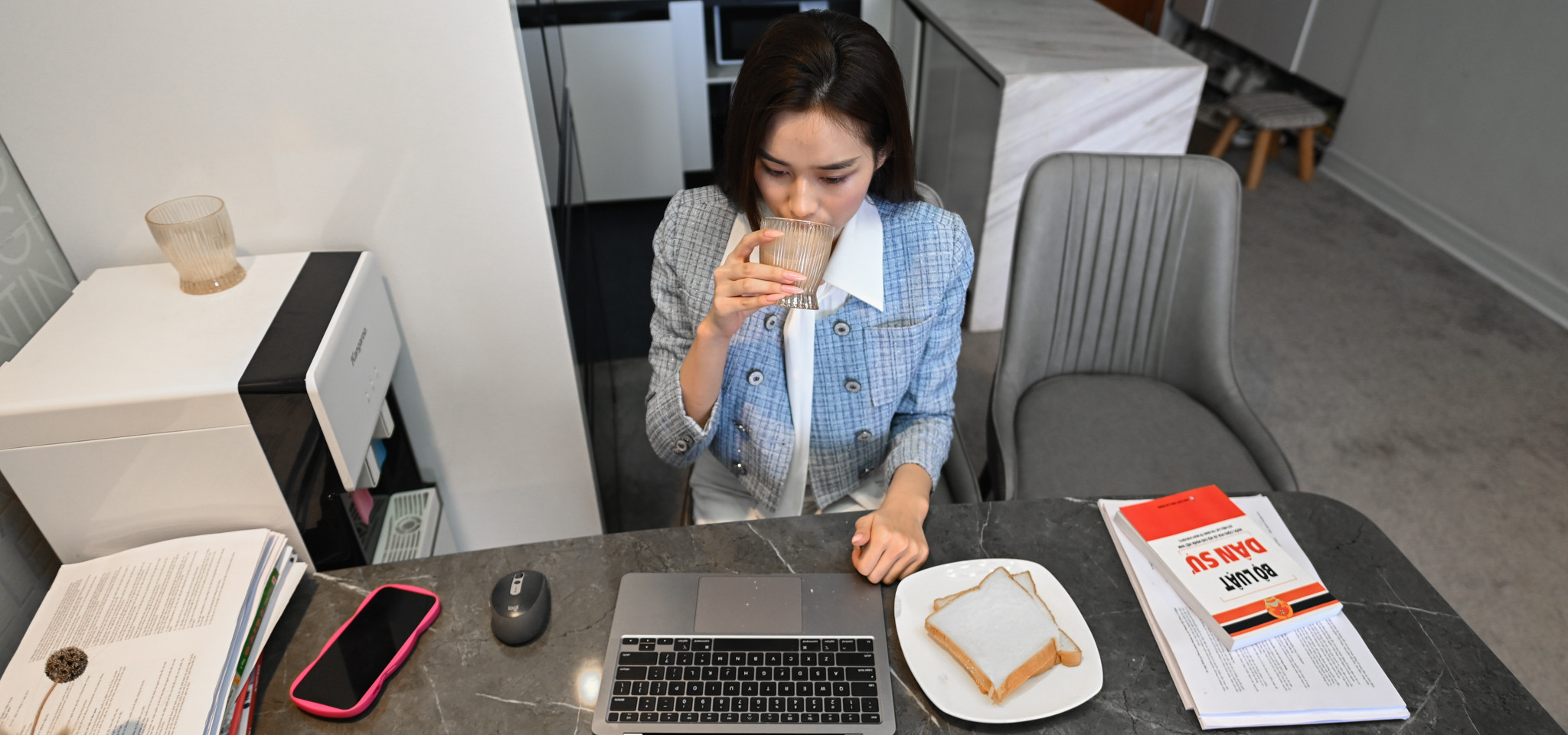 Bận rộn giữa công việc và lịch học tại trường, gần đây ngày nào hoa hậu cũng rời nhà từ sáng đến tối muộn mới trở về. Hôm nay, một ngày cuối tháng 11, cô vừa ôn bài, vừa tranh thủ dùng bữa trưa đơn giản để chuẩn bị cho buổi thi hết môn.
