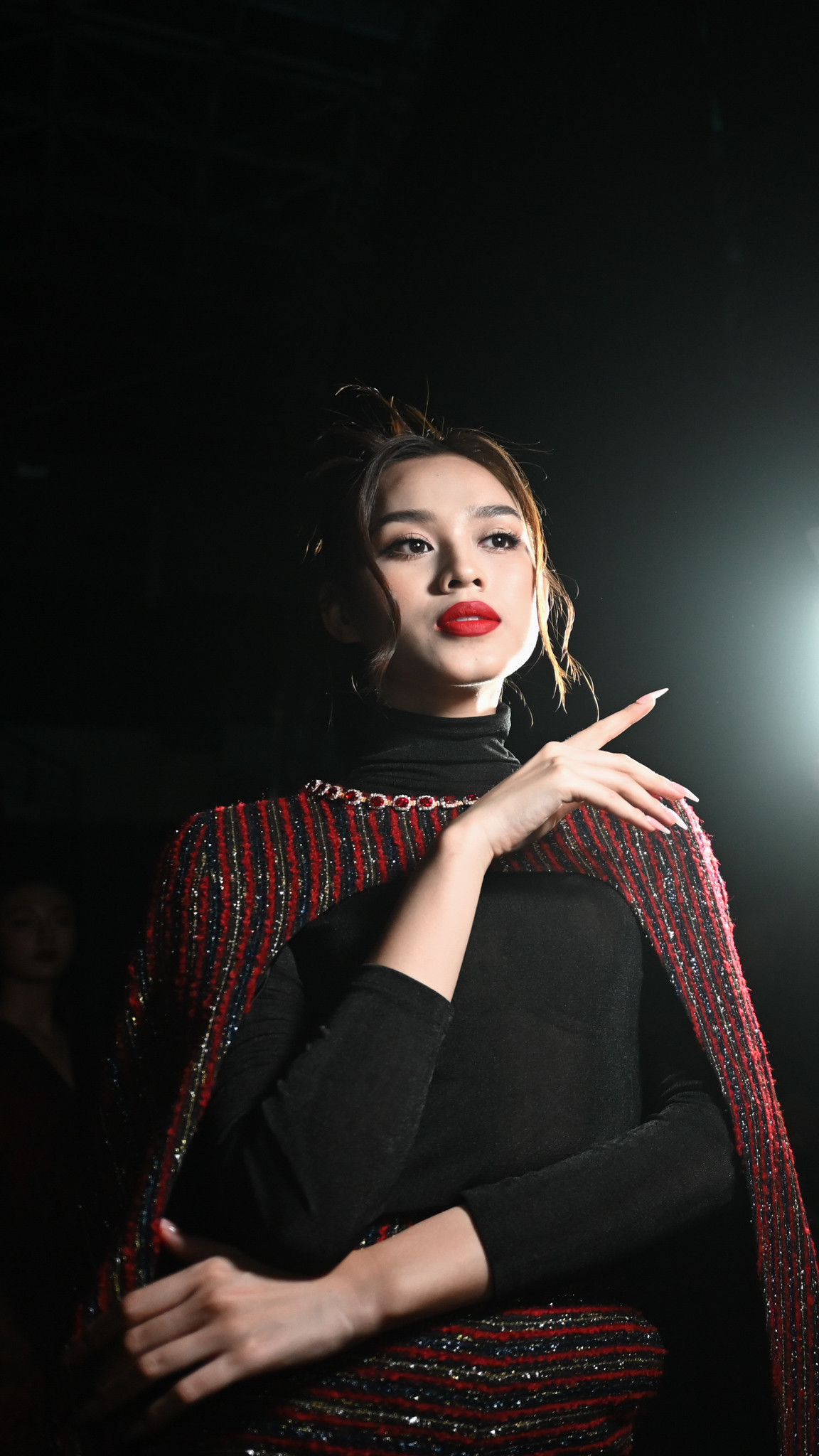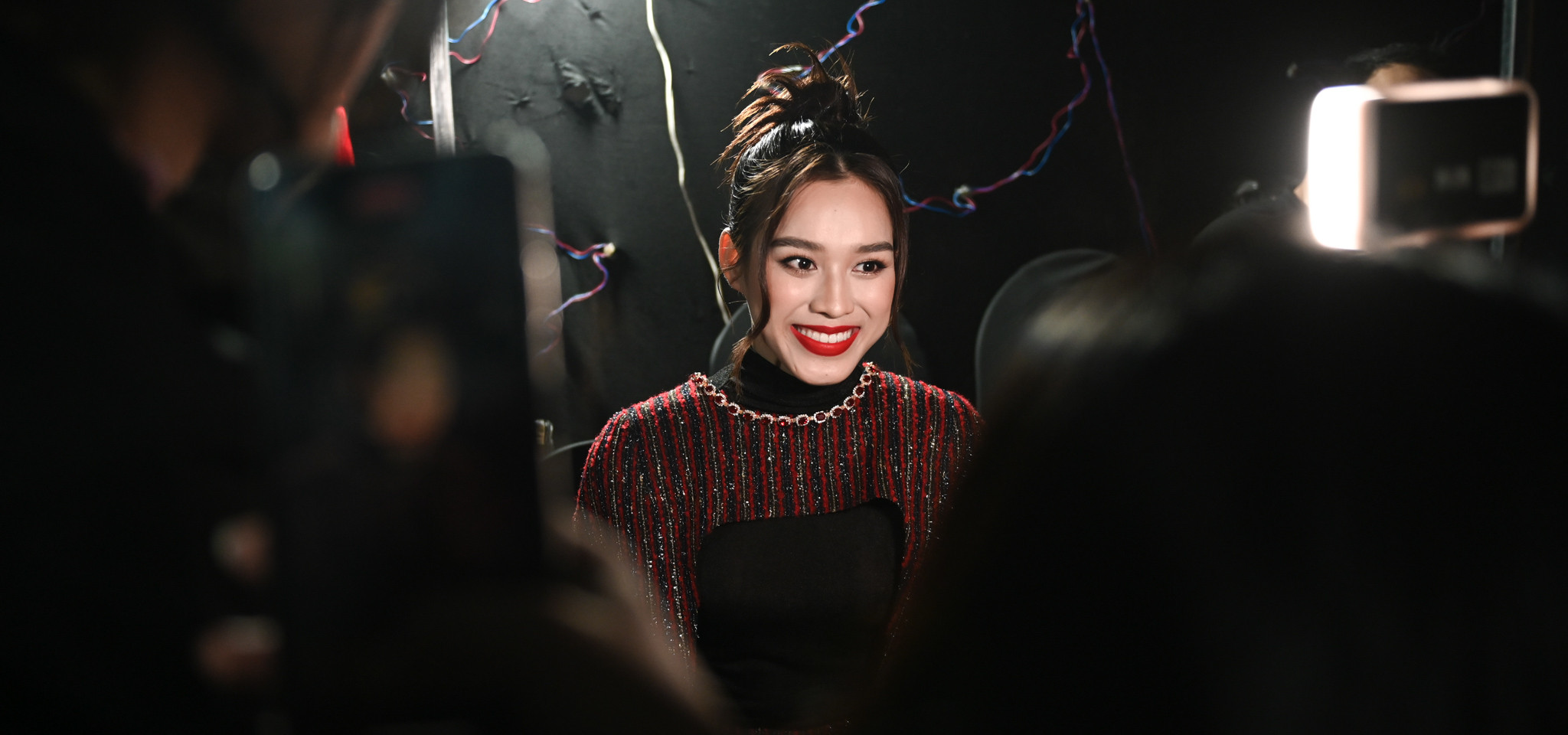 Trong buổi tối hôm nay, Hà tham dự show diễn thời trang với vai trò người mở màn cho bộ sưu tập. Trong phòng chờ, cô ngồi đợi cùng hoa hậu Lương Thùy Linh. Hai cô gái ở tuổi Gen Z cùng nhau quay video để chia sẻ với công chúng trên mạng xã hội.