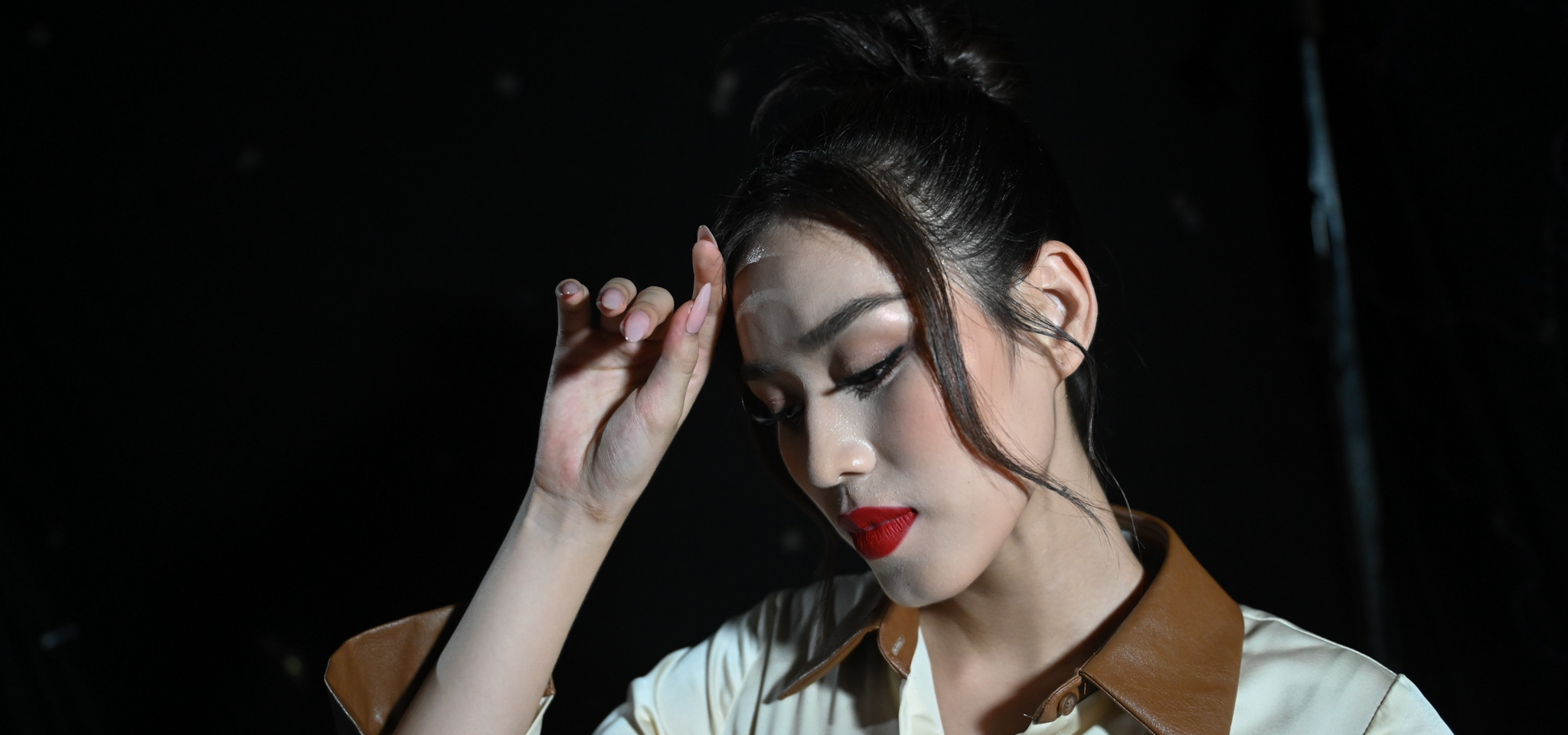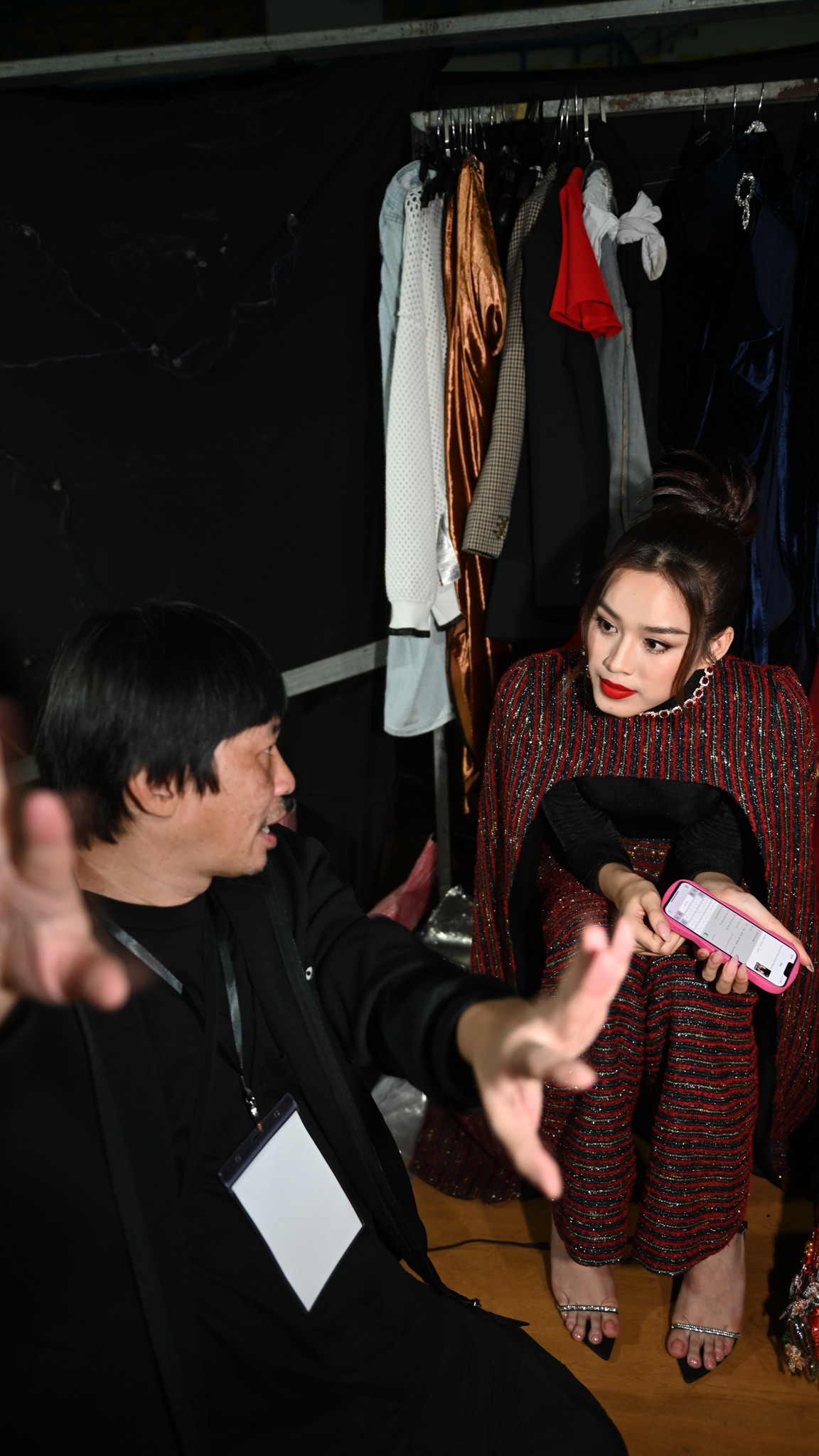 Trước giờ lên sân khấu chừng 30 phút, đạo diễn chương trình gặp mặt Đỗ Thị Hà để trao đổi với cô về việc trình diễn.