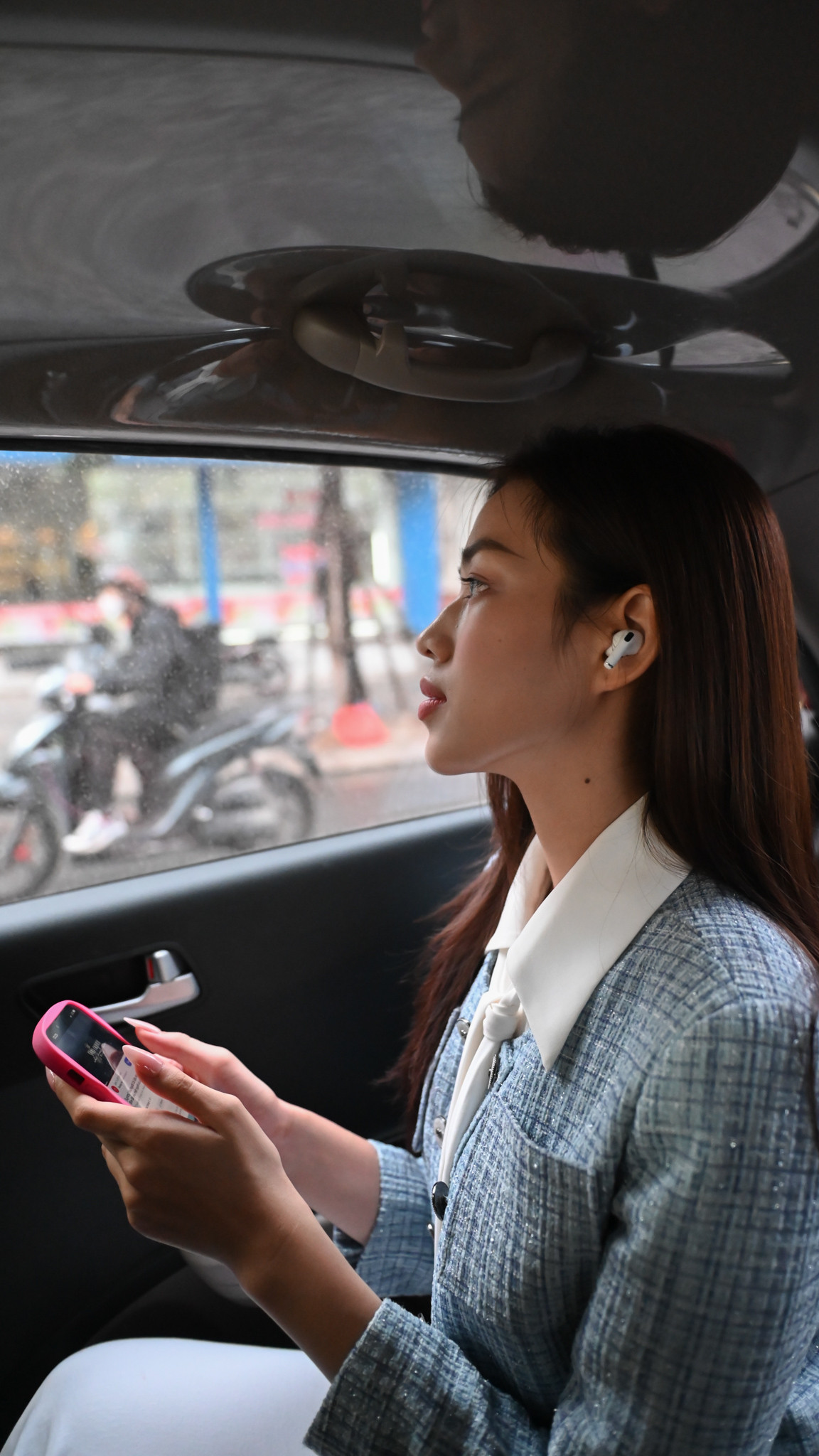 Một ngày mới của Hoa hậu Việt Nam 2020 Đỗ Thị Hà bắt đầu bằng cuốc taxi từ nhà đến nơi làm việc. Hiện cô là sinh viên năm thứ 4, Khoa Luật, ĐH Kinh tế Quốc dân.