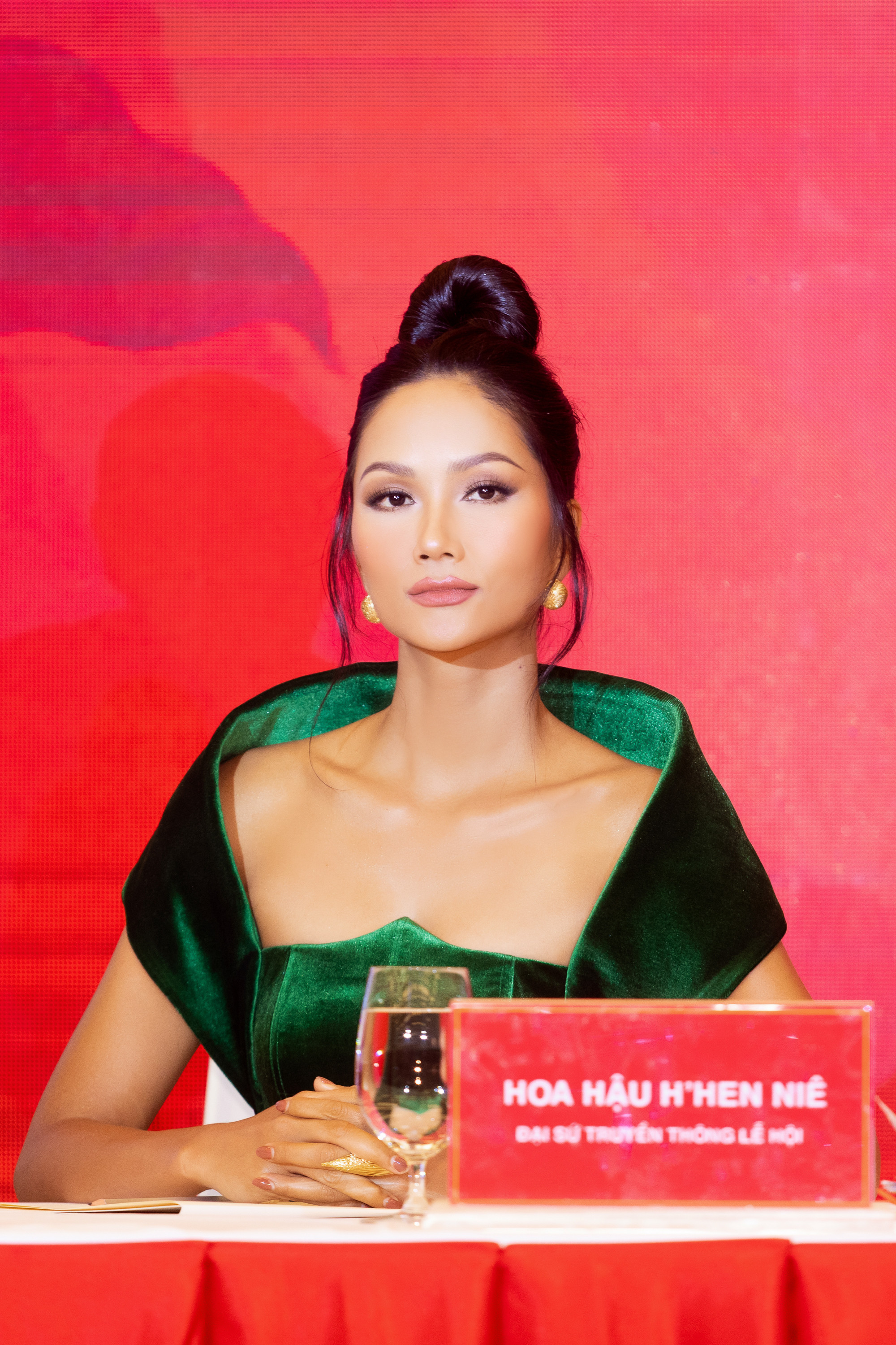 Hoa hậu H'Hen Niê xuất hiện xinh đẹp, sải bước tự tin, trở thành đại sứ truyền thông "Lễ hội cà phê Buôn Ma Thuột" năm 2023.Người đẹp diện đầm màu xanh ngọc lục bảo lấy cảm hứng từ lá cà phê trên những cánh đồng bạt ngàn ở Tây Nguyên.