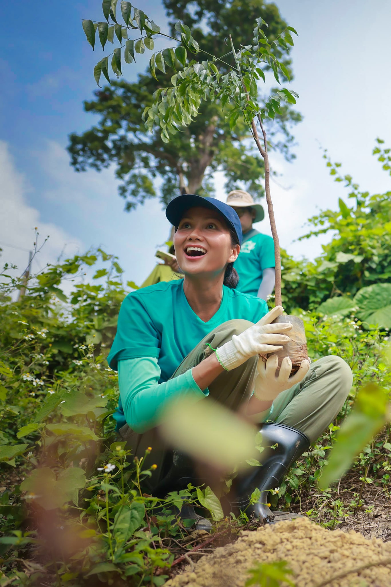 Kết thúc "Lễ hội cà phê Buôn Ma Thuột 2023" tại Đắk Lắk, hoa hậu H'Hen Niê di chuyển đến Thanh Hoá để trồng rừng. Trong dự án lần này, cô hợp tác cùng Trung tâm Bảo tồn Thiên nhiên Gaia. Nhân dịp kỷ niệm 5 năm đăng quang Hoa hậu Hoàn vũ Việt Nam, H'Hen Niê muốn trồng 5ha rừng. Sau 25 ngày phát động, người đẹp đã có đủ chi phí trồng 1ha rừng đầu tiên tại Bến En (Thanh Hoá).H'Hen Niê chia sẻ: “Tôi hạnh phúc vì những cây con ngày hôm nay sẽ lớn lên, phát triển thành rừng cây, phục vụ cho thế hệ mai sau. Cứ như thế, sự sống được tiếp nối và duy trì".Người đẹp cho biết cô yêu màu xanh của cây cối và không khí trong lành khi đặt chân đến những khu rừng. Hoa hậu H'Hen Niê trực tiếp cùng người dân ươm trồng 1190 cây xanh tại Bến En. Trong đó, cô lựa chọn trồng chủ yếu 2 loại cây lim và giổi xanh.H'Hen Niê tràn đầy năng lượng, liên tục pha trò, kể chuyện giúp cả đoàn xua tan mệt mỏi khi di chuyển trong rừng.Người đẹp ăn mặc giản dị, sẵn sàng cầm cuốc, dùng tay bới đất trồng cây.Sau 1ha rừng đầu tiên, H'Hen Niê dự kiến trồng 4ha còn lại khi có đủ kinh phí. Cả đoàn sẽ di chuyển đến Vườn quốc gia Cúc Phương để tiếp tục triển khai hoạt động trồng rừng.H'Hen Niê đang tích luỹ số tiền kiếm được từ Facebook và nhờ bạn bè ủng hộ, hỗ trợ cho dự án trồng rừng.